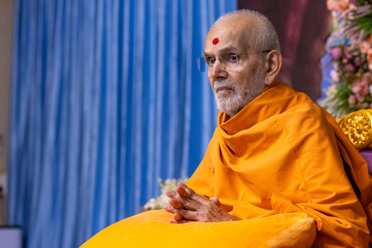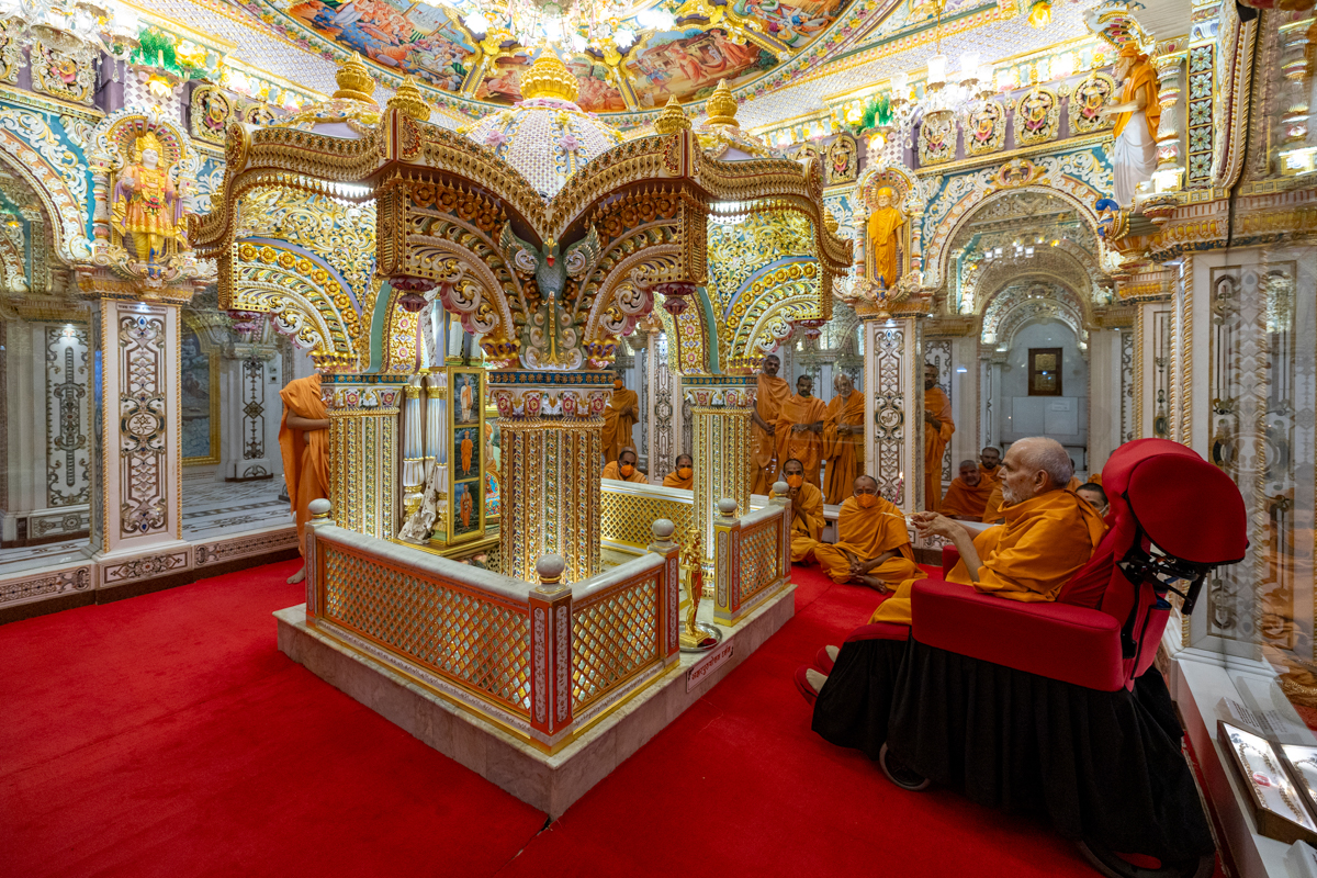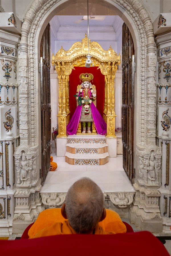 Swamishri engrossed in darshan of Shri Ghanshyam Maharaj