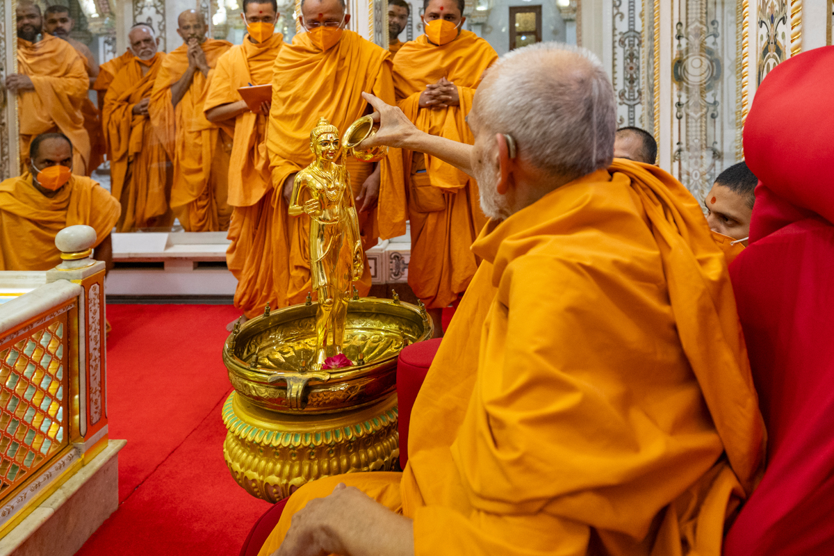 Swamishri performs abhishek of Shri Nilkanth Varni