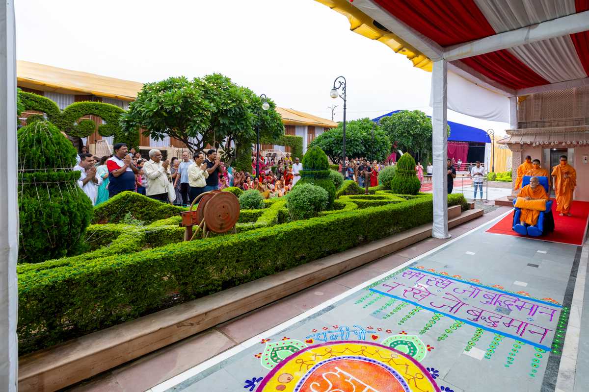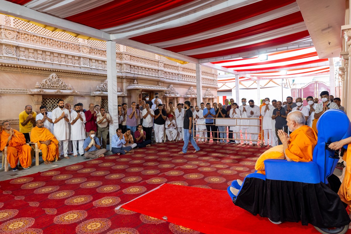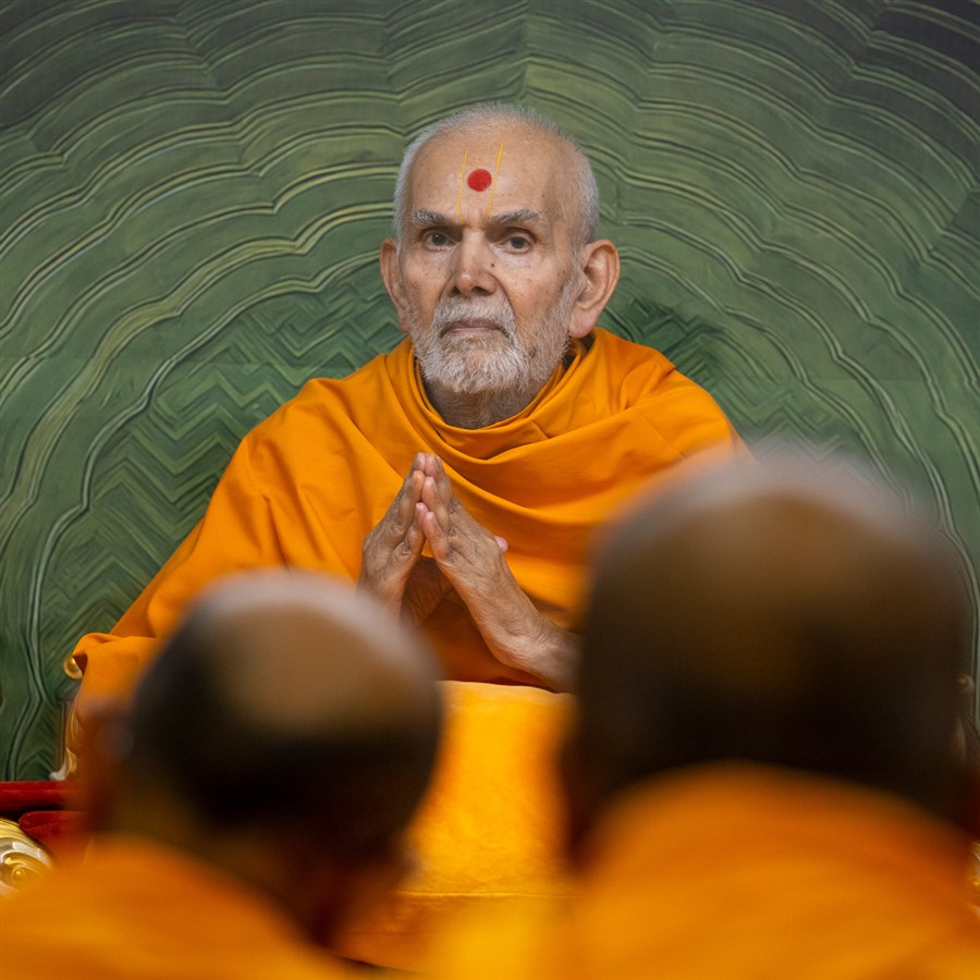 Swamishri greets all with folded hands