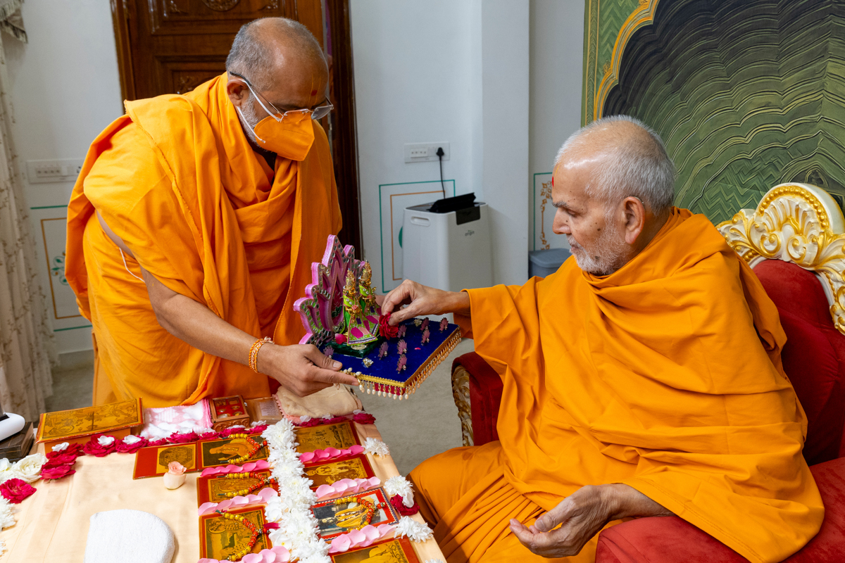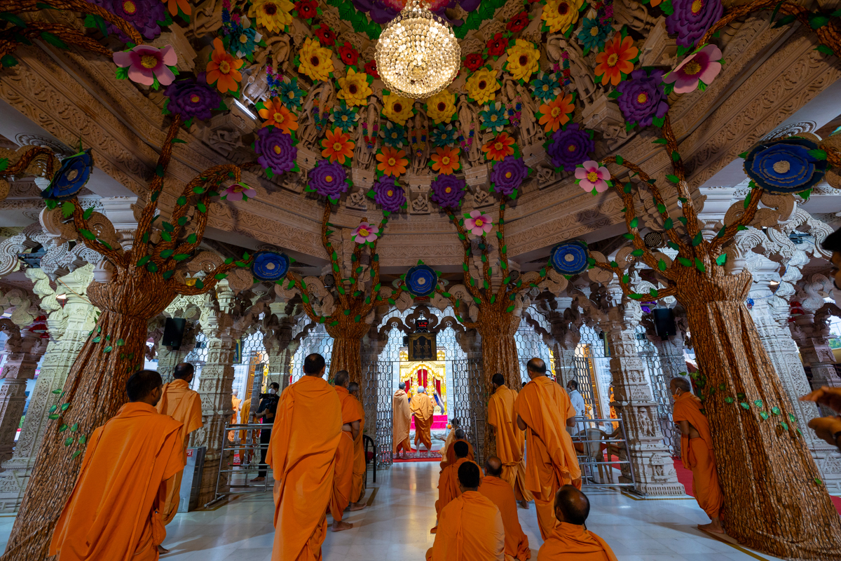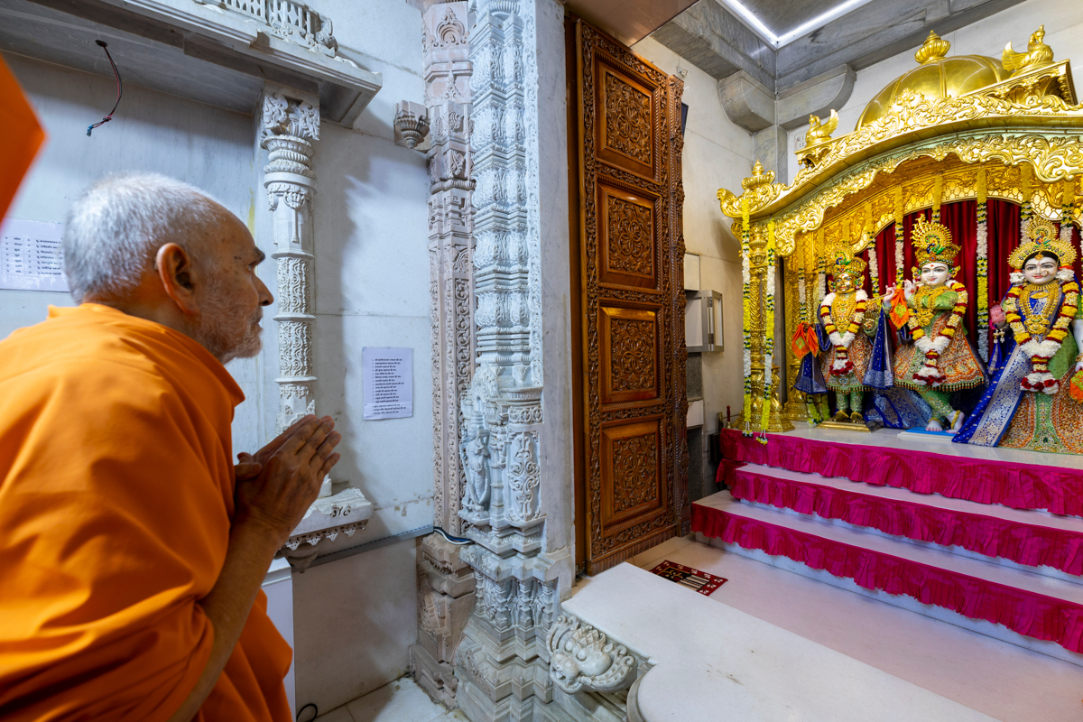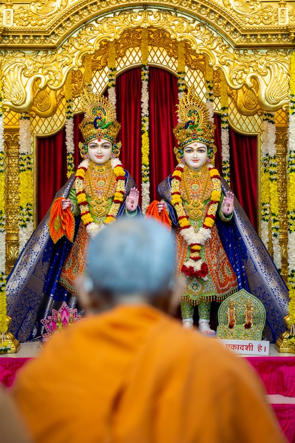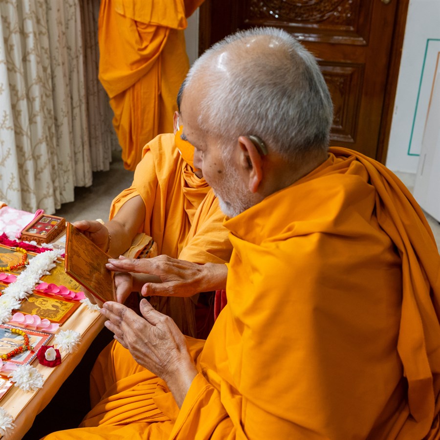 Swamis doing Swamishri's puja darshan