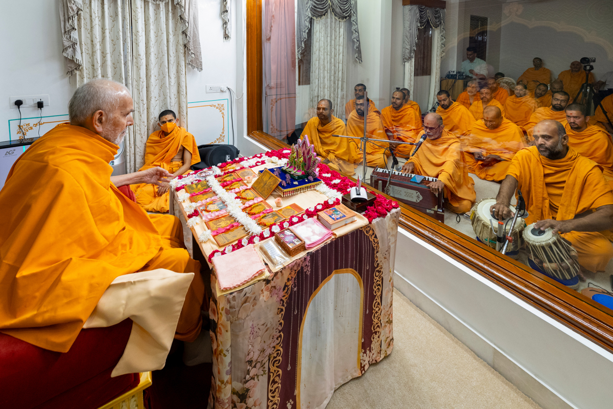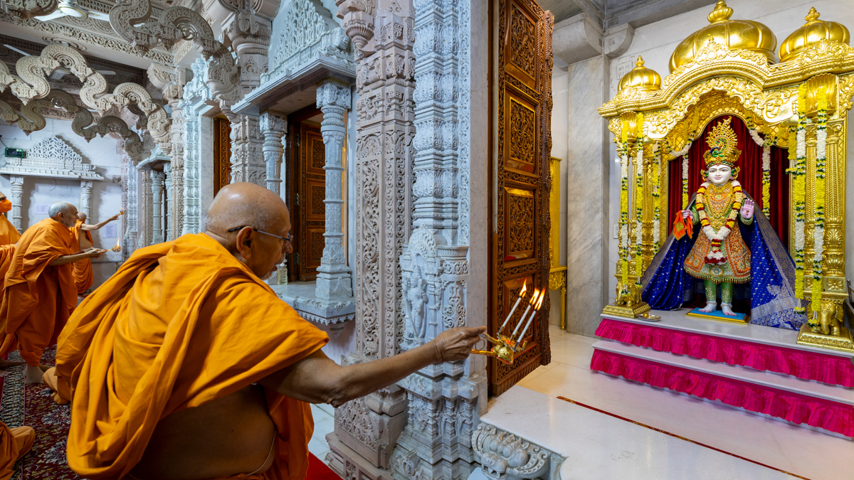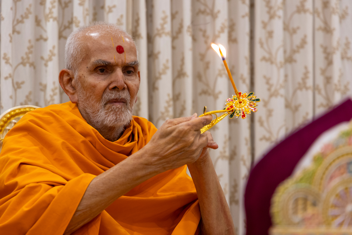 Swamishri performs the morning arti