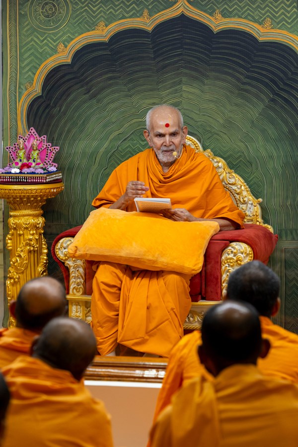 Swamishri blesses the morning assembly