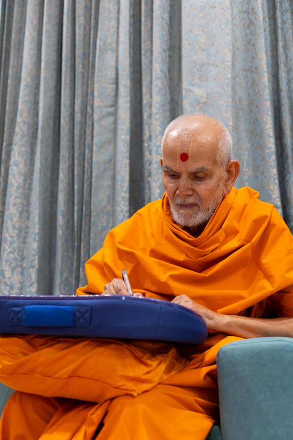 Swamishri writes a message for Dhanurmas