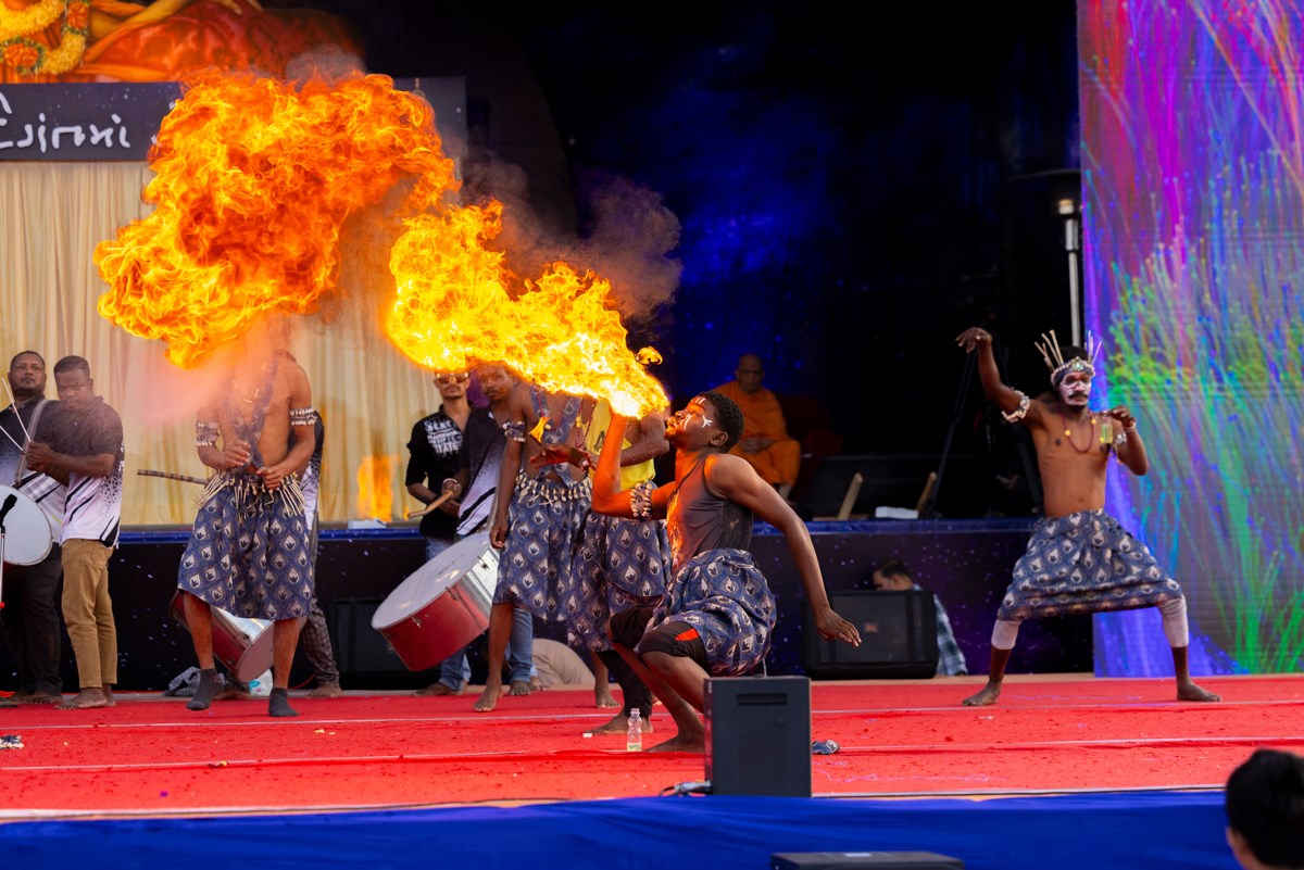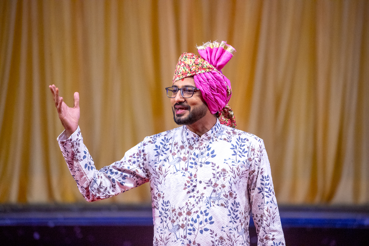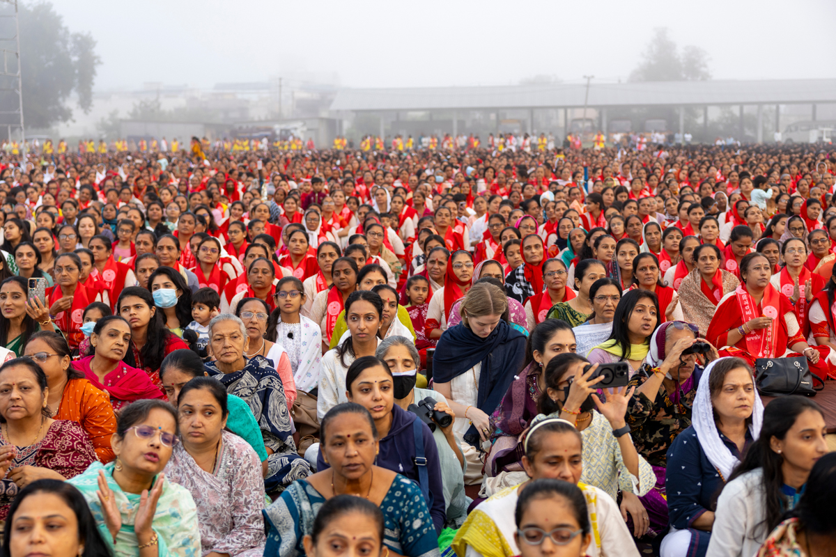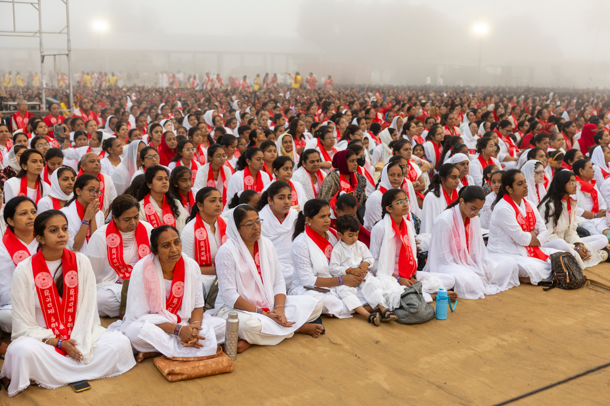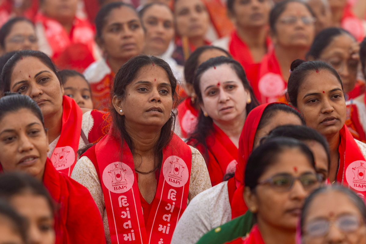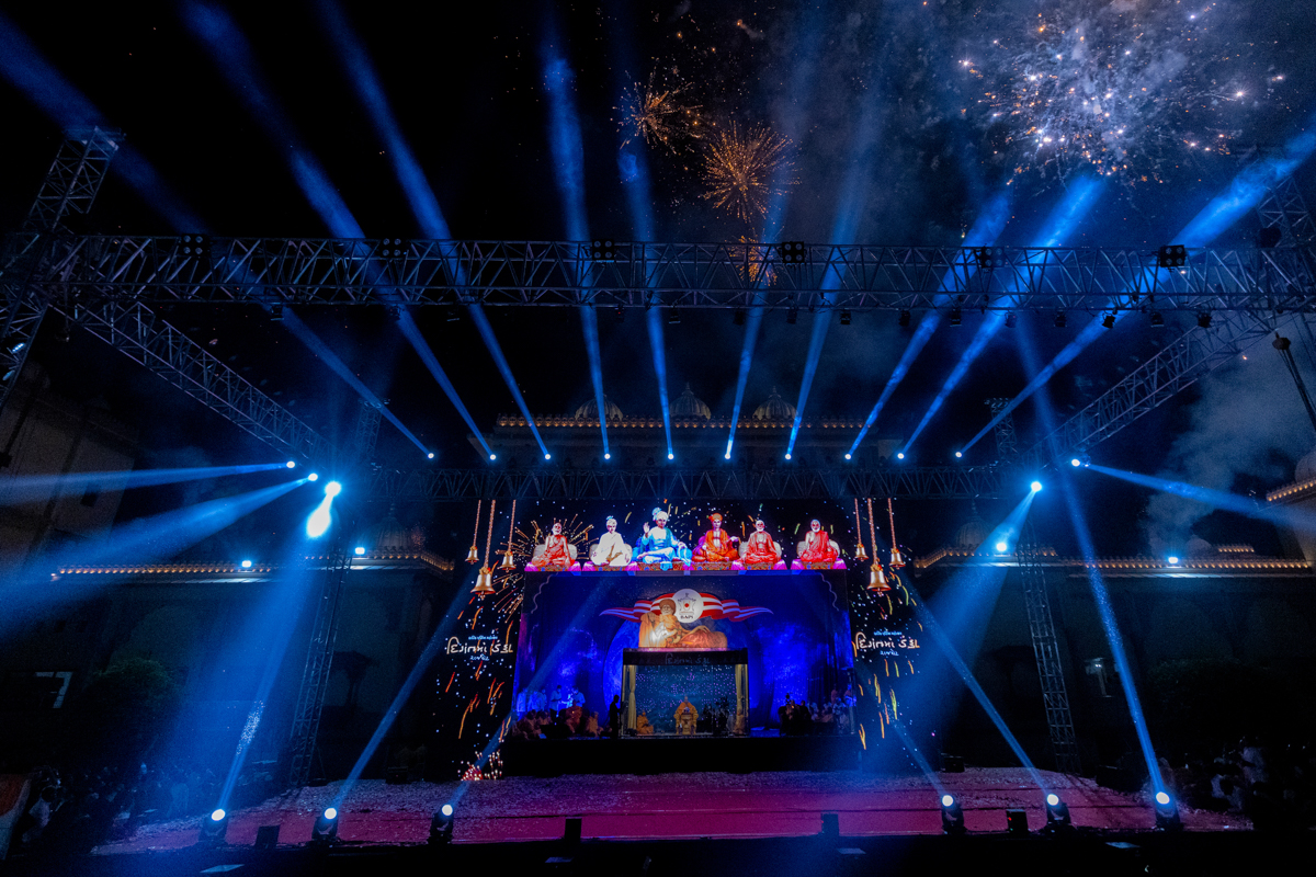 Swamis and youths sing kirtans at the beginning of the evening Rajkot Din assembly, titled 'Digantma Danka'