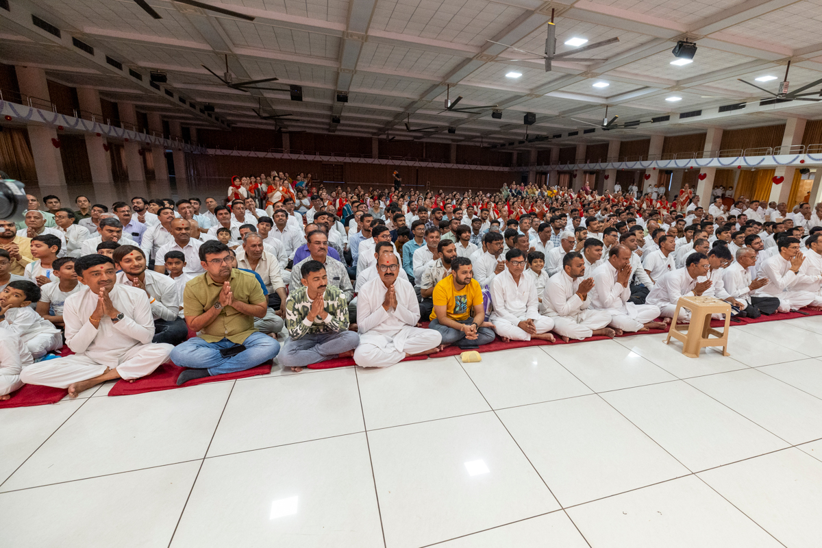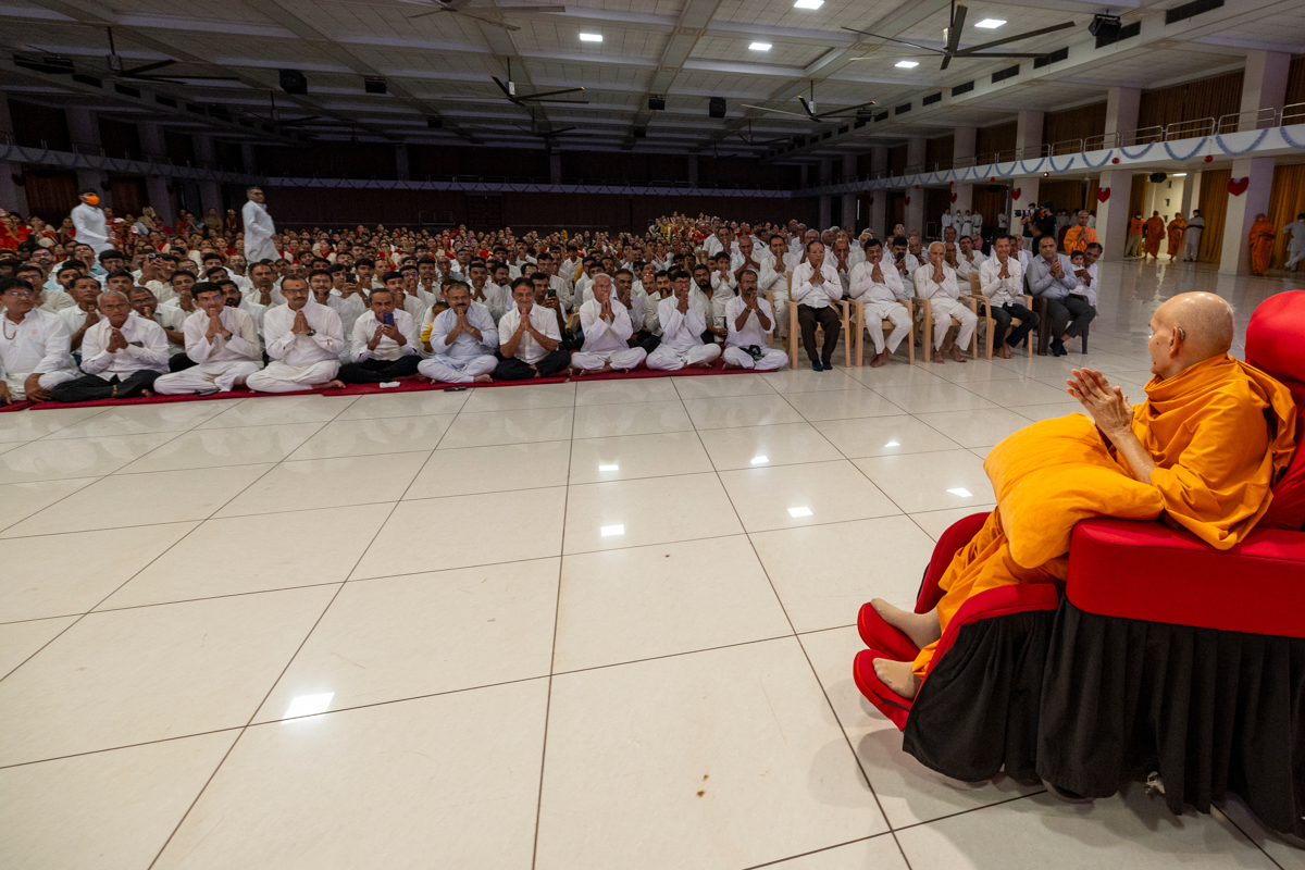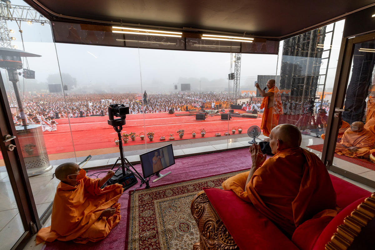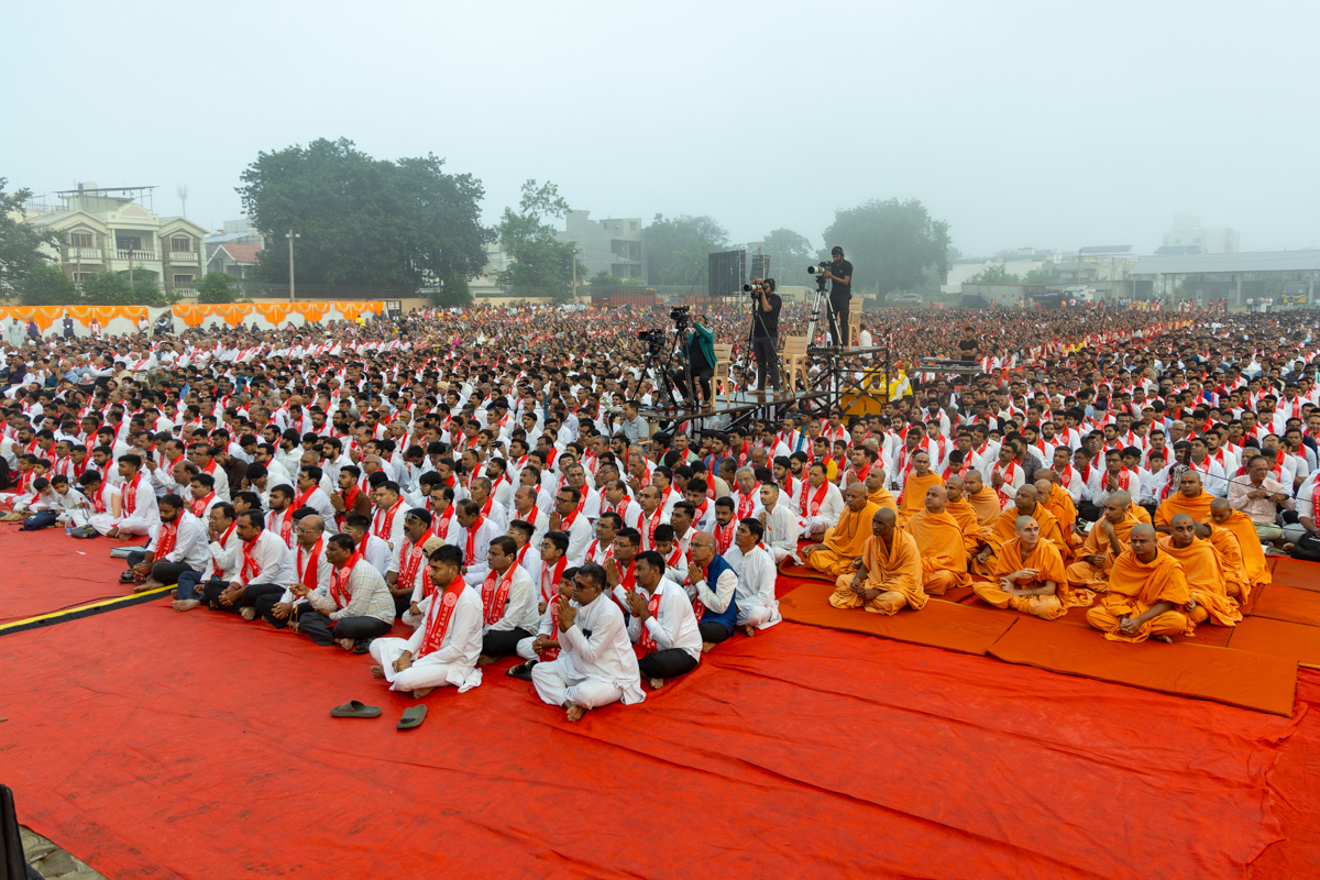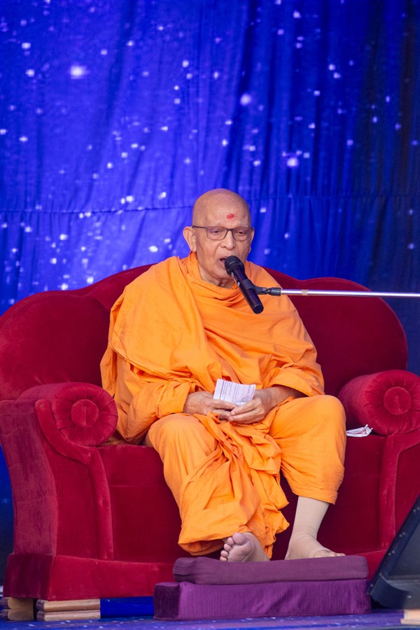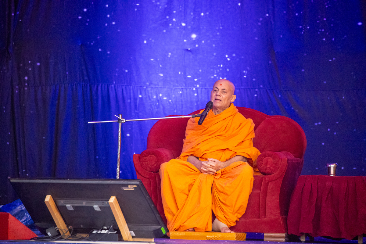 Pujya Ghanshyamcharan Swami addresses the assembly