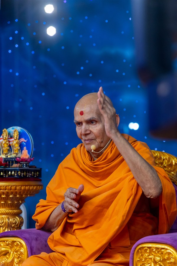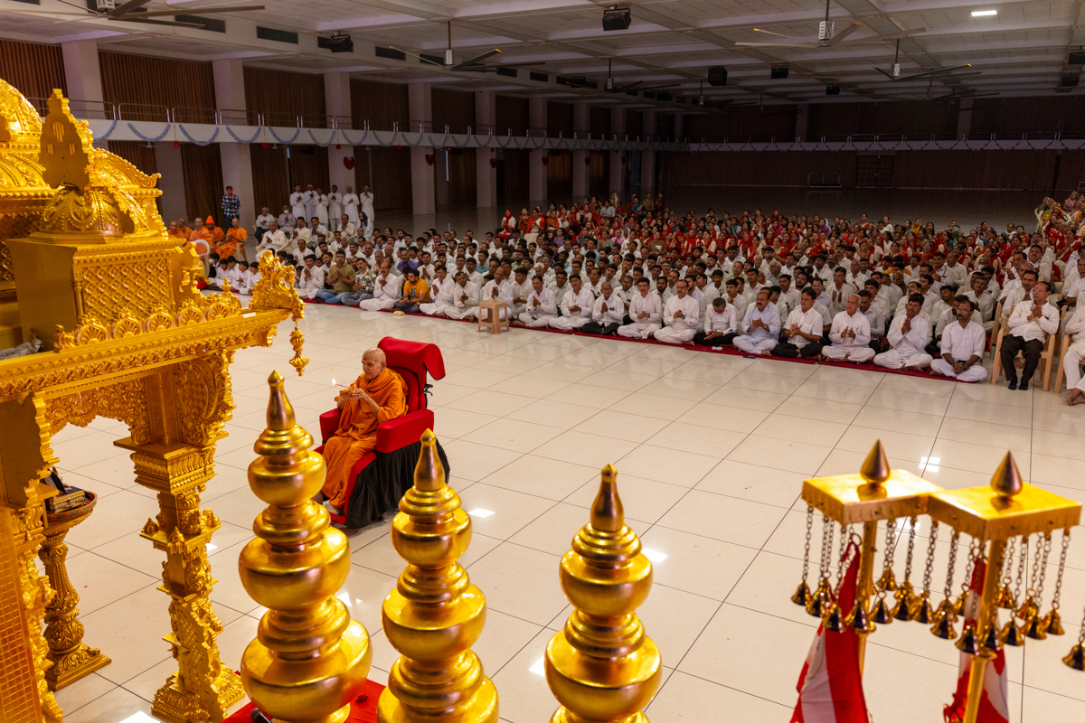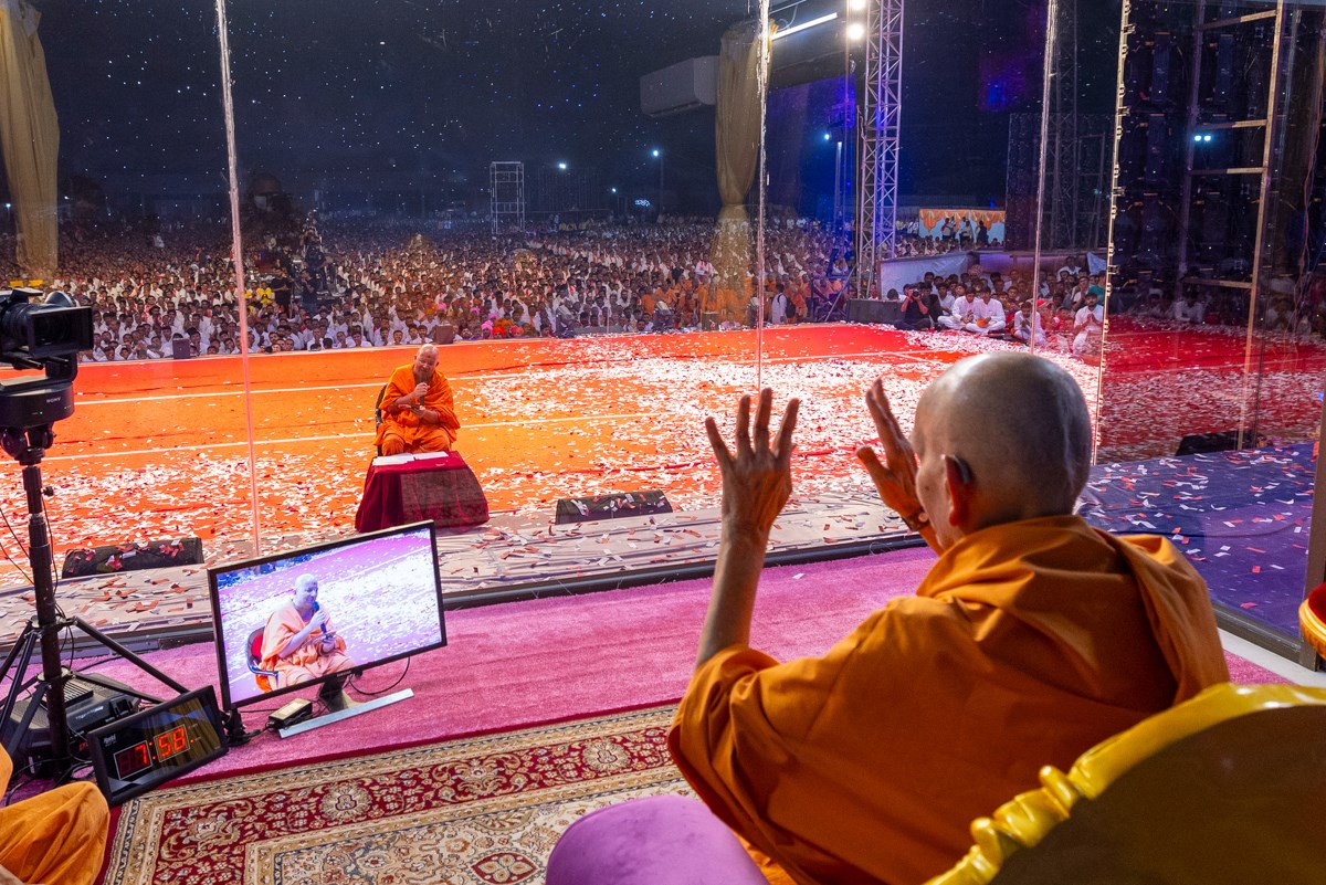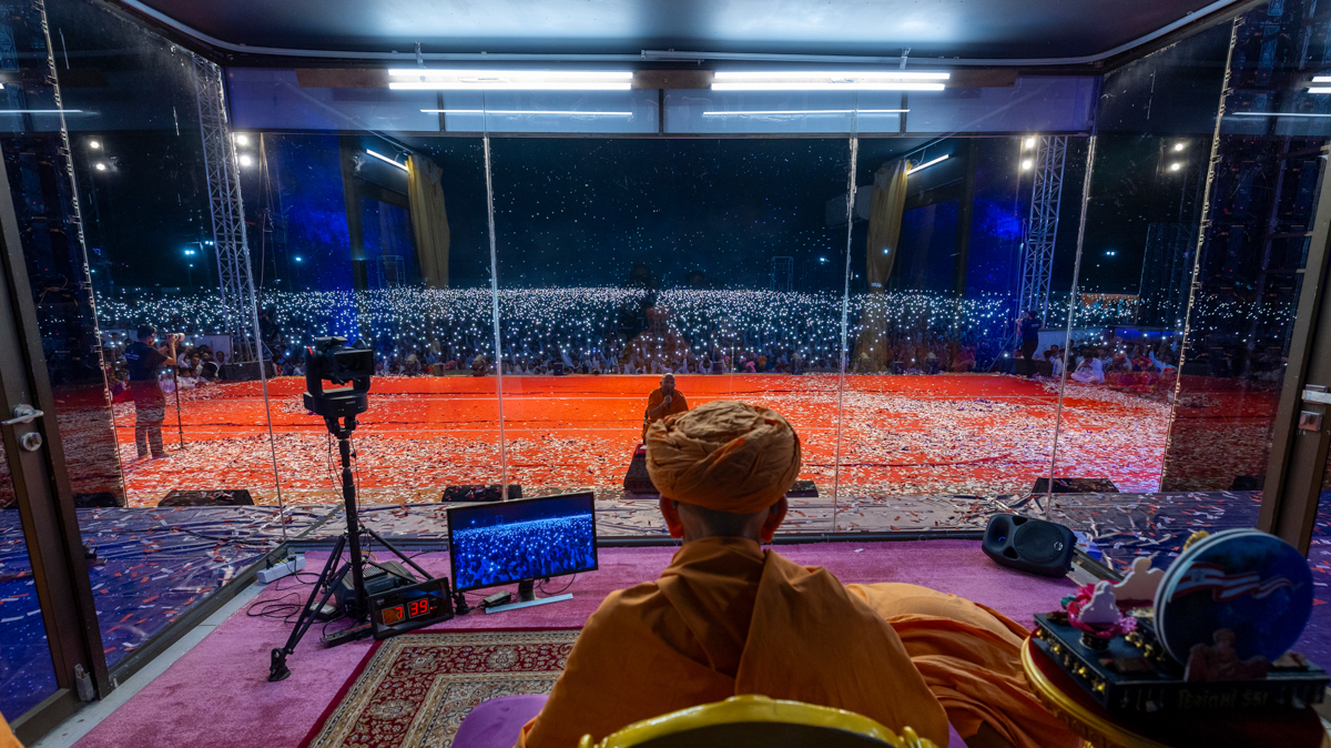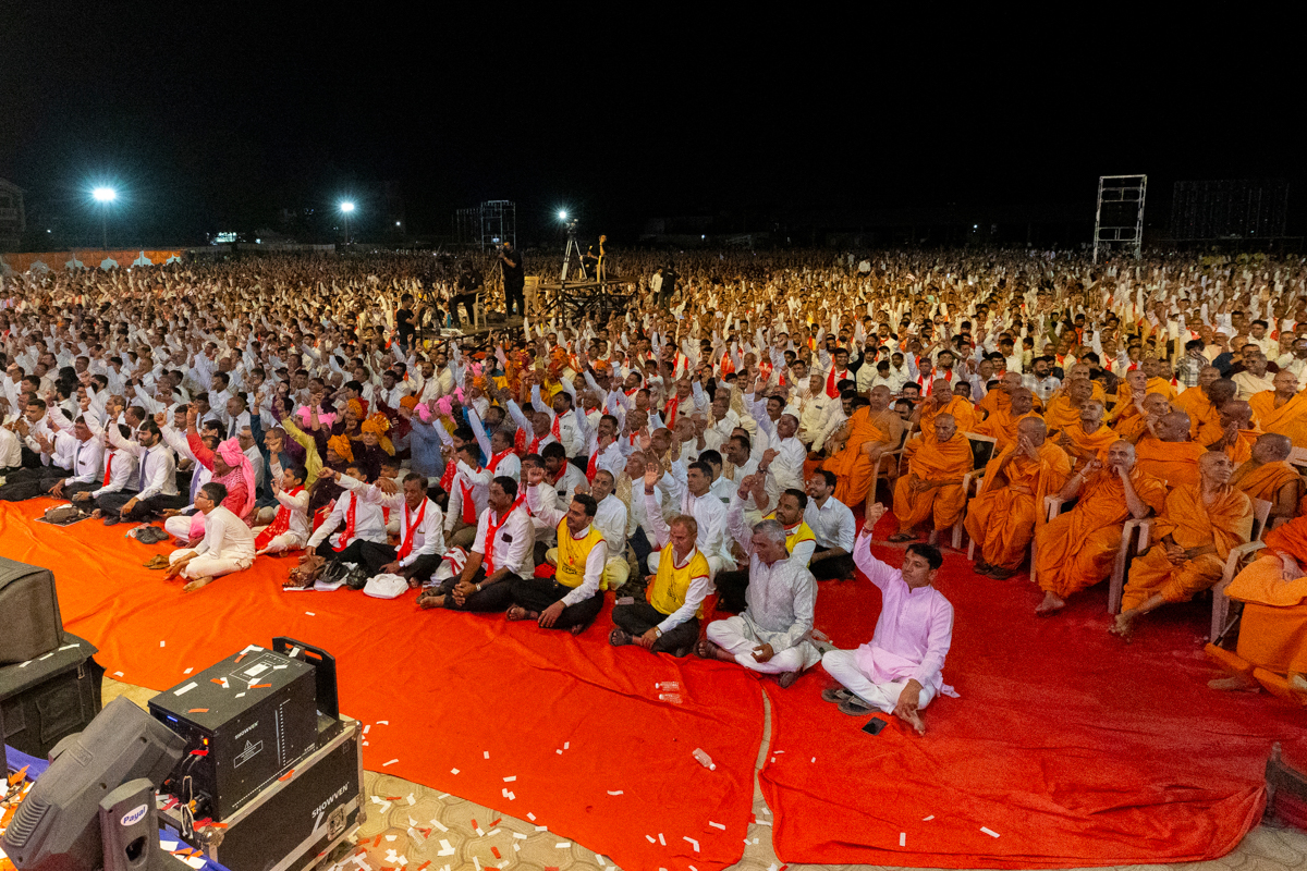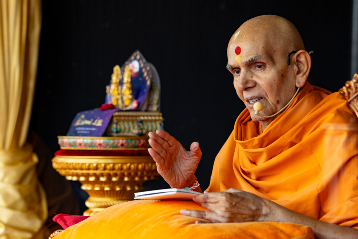 Pujya Ghanshyamcharan Swami addresses the assembly
