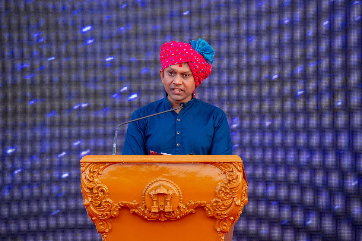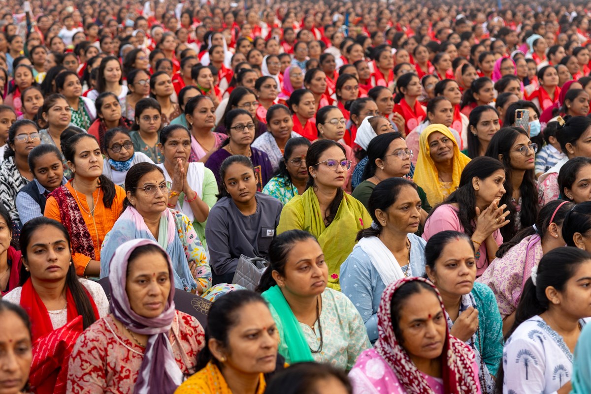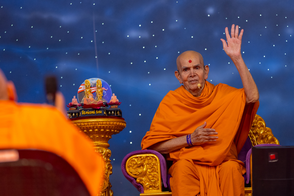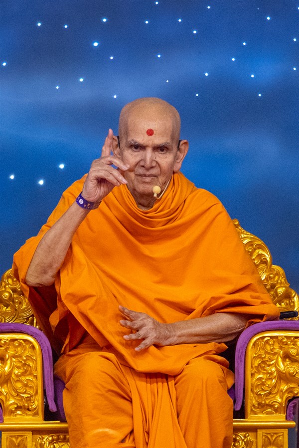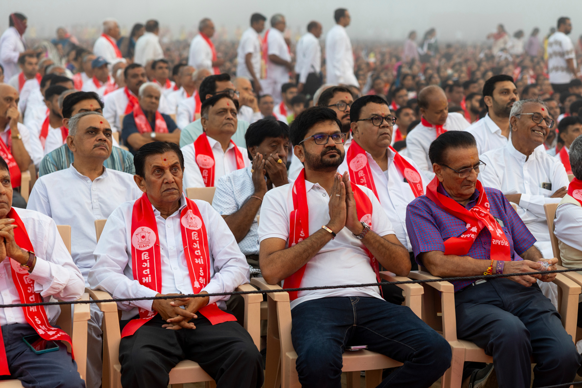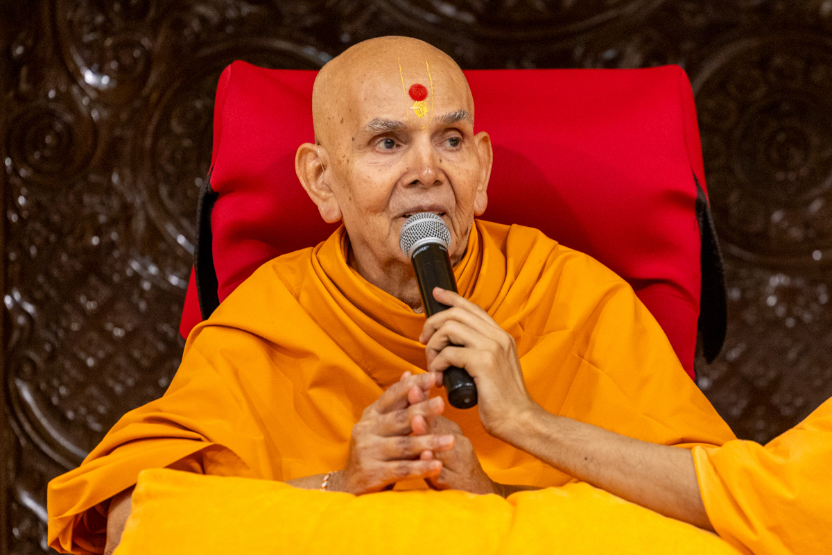 Pujya Ghanshyamcharan Swami addresses the assembly