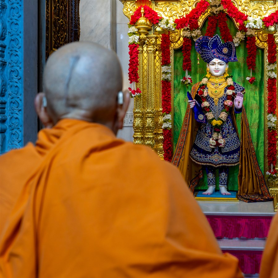 Swamishri engrossed in darshan of Shri Ghanshyam Maharaj