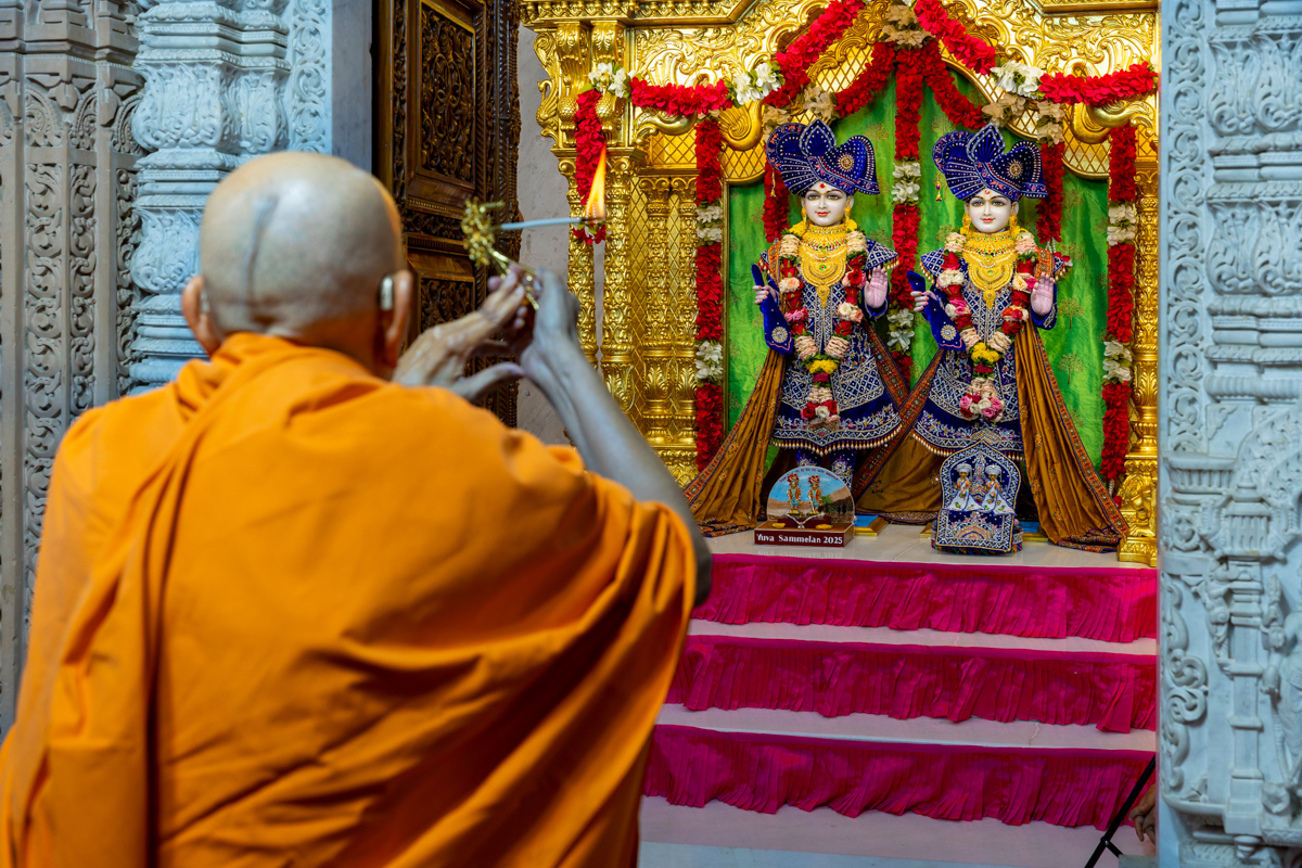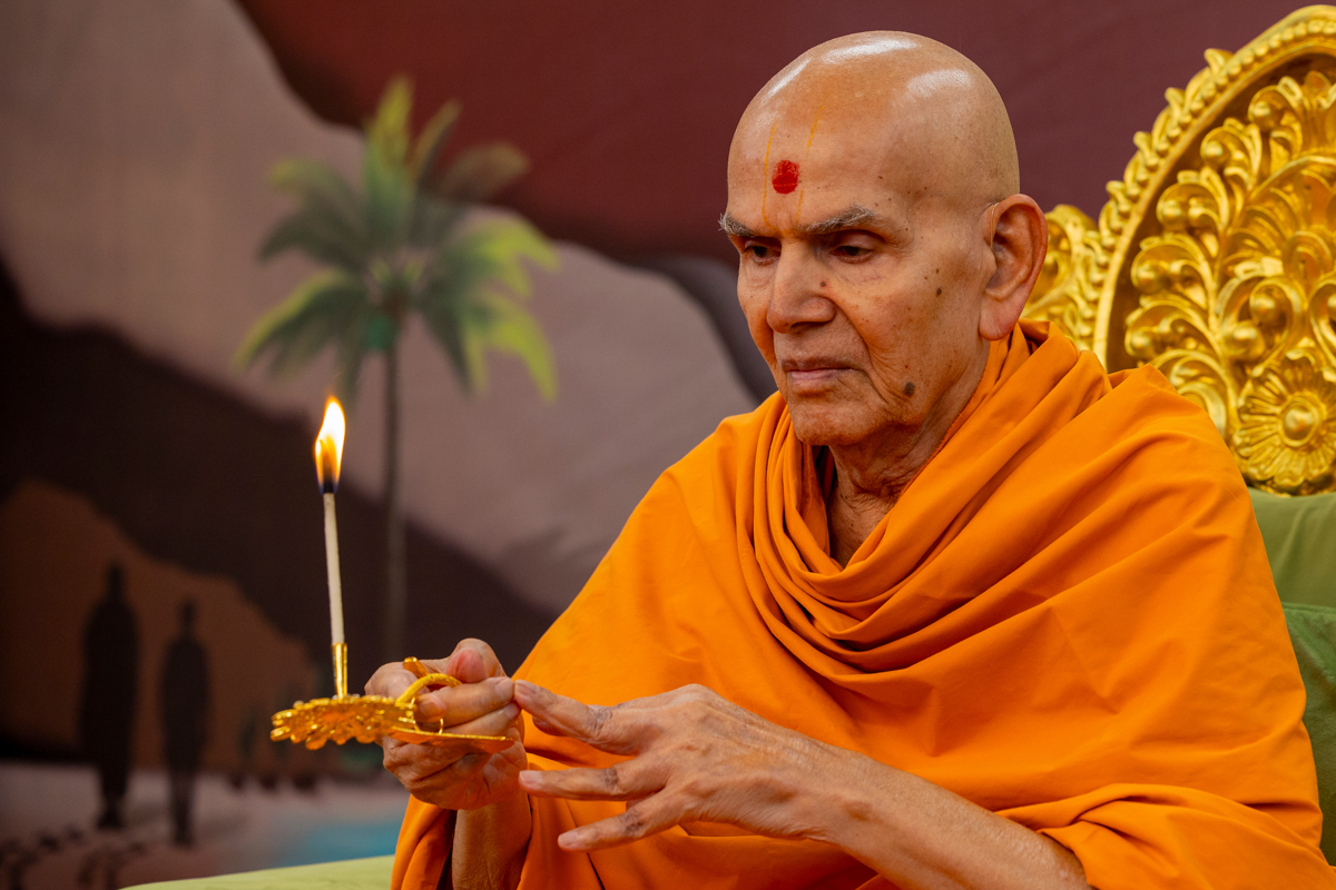 Swamishri performs the morning arti
