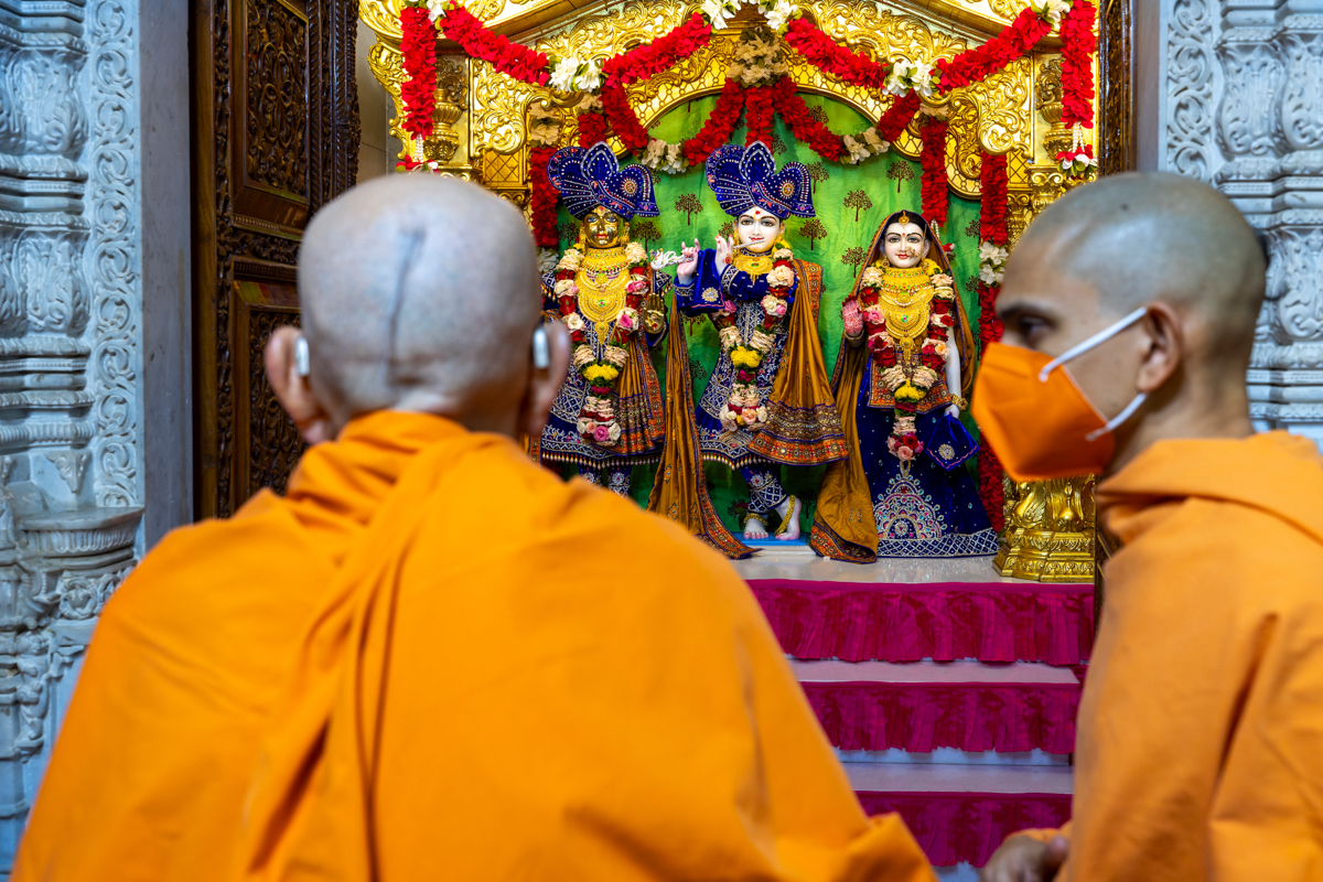 Swamis doing darshan of the arti