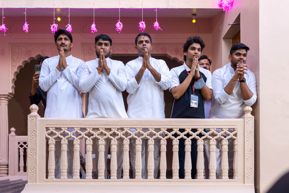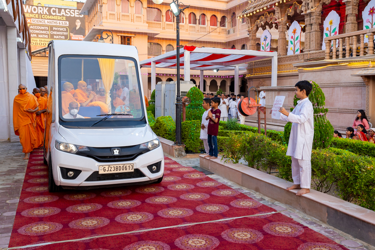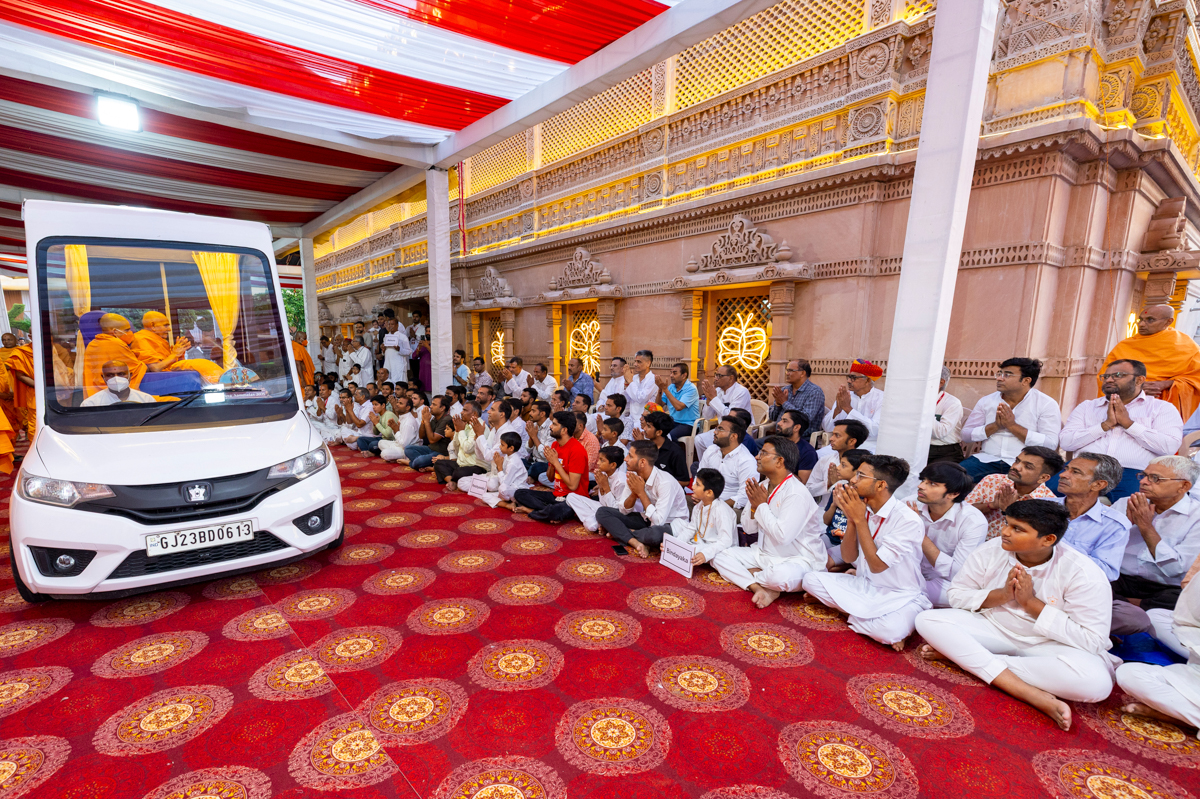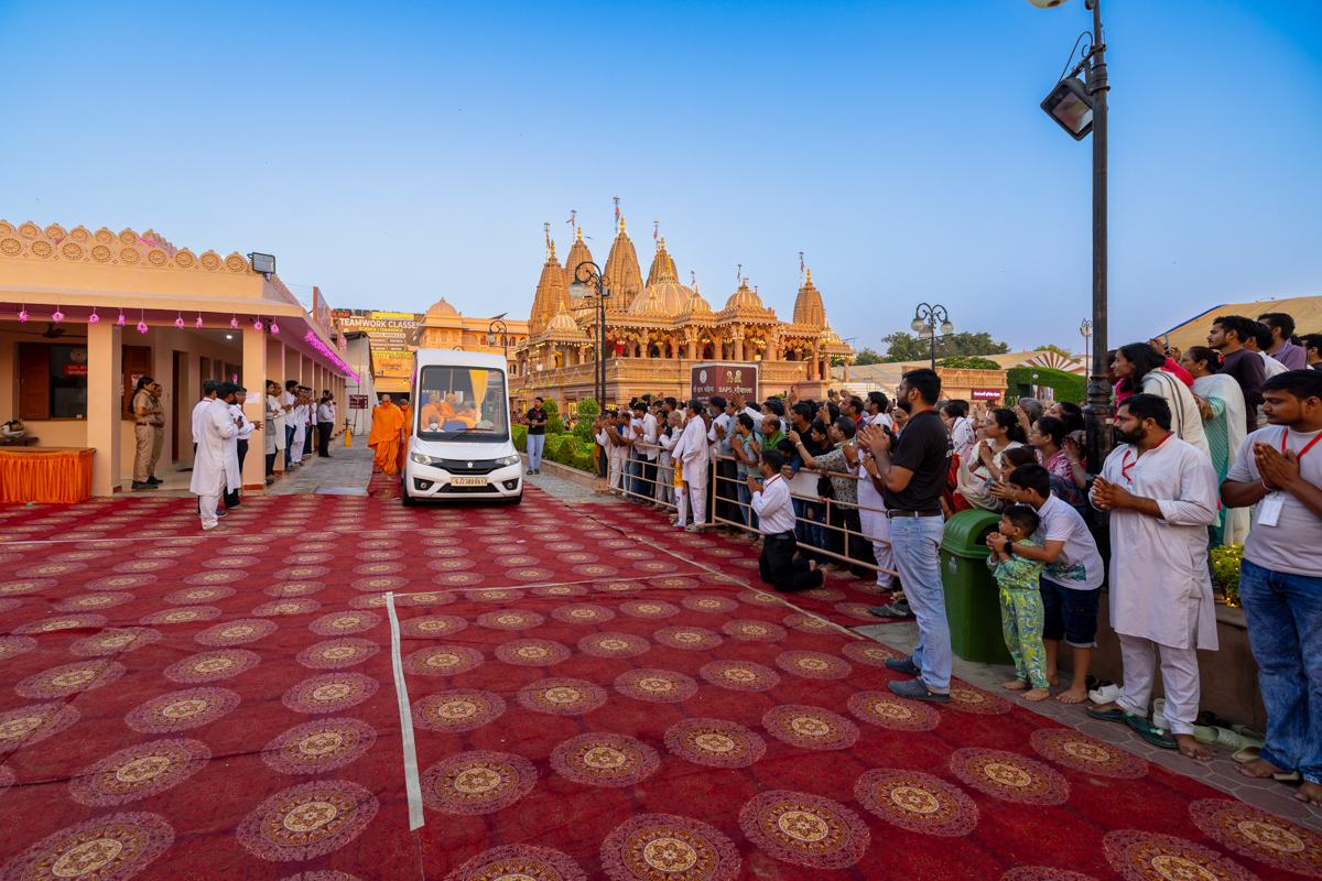 Swamishri greets all with folded hands