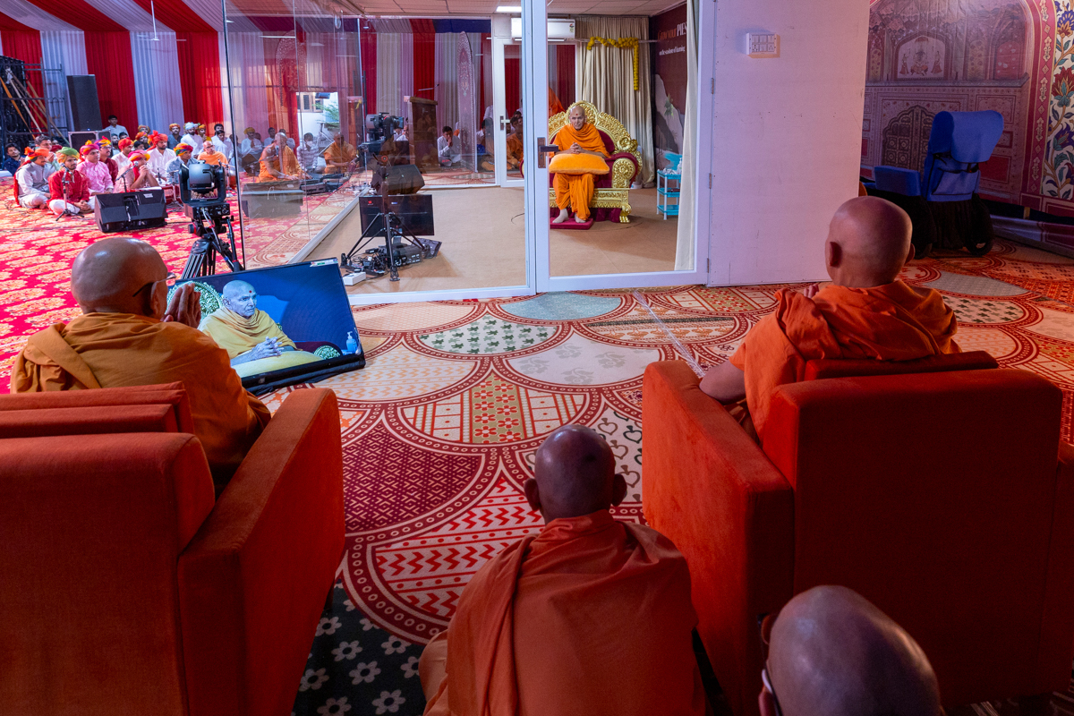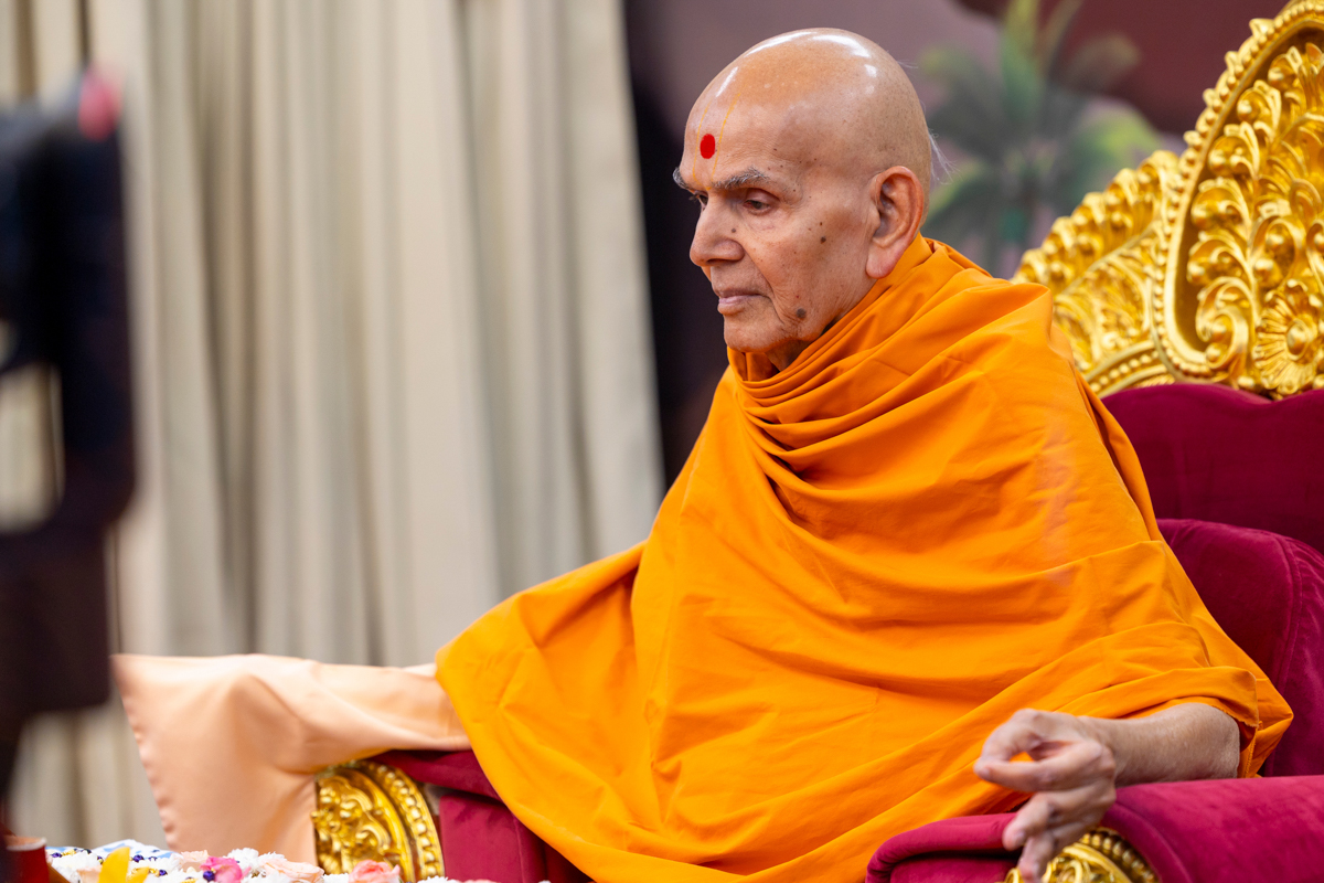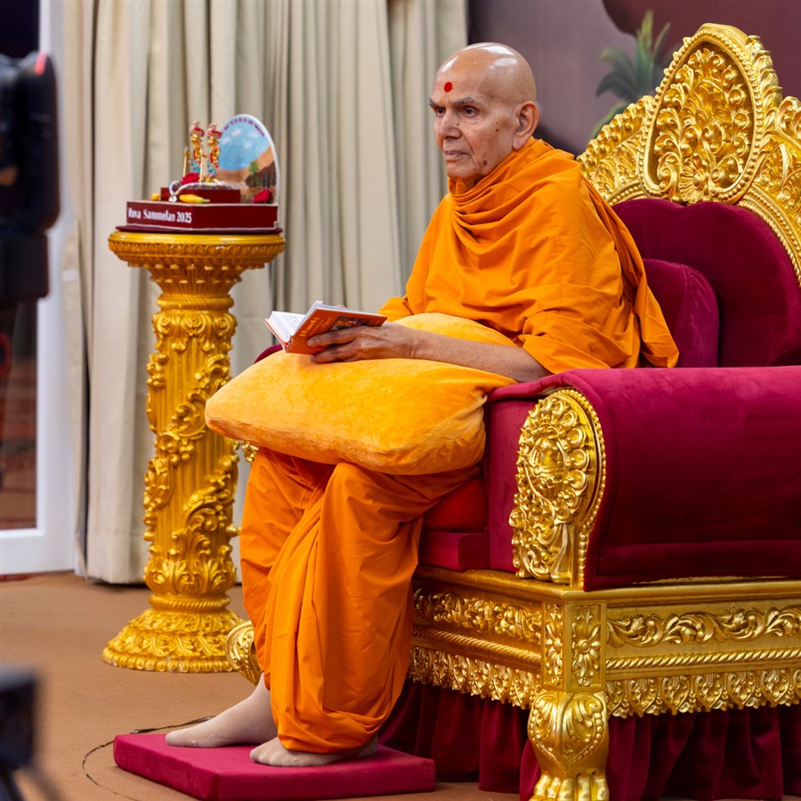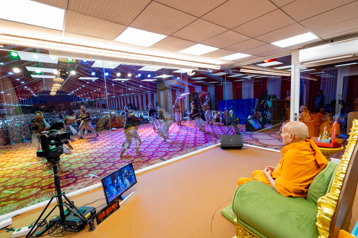 Swamishri watches the performance
