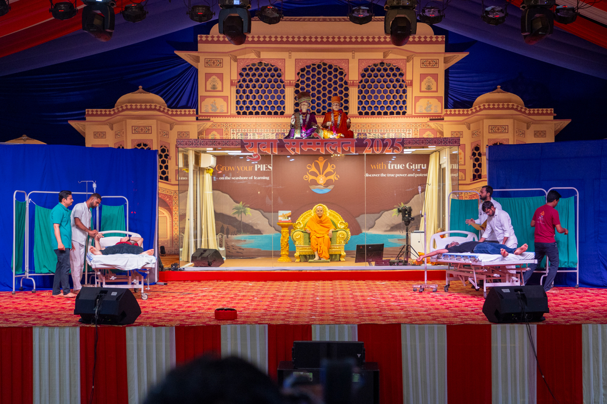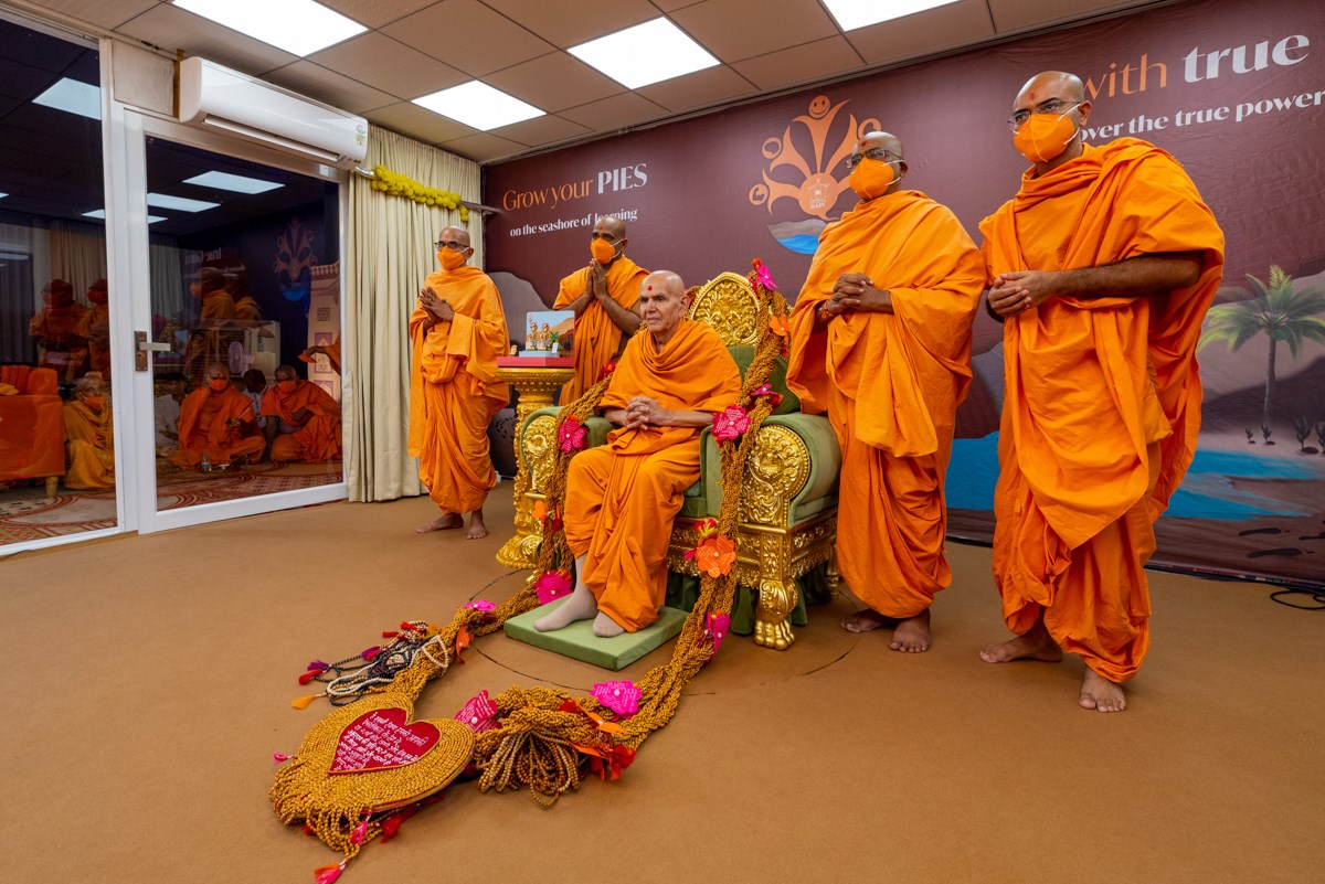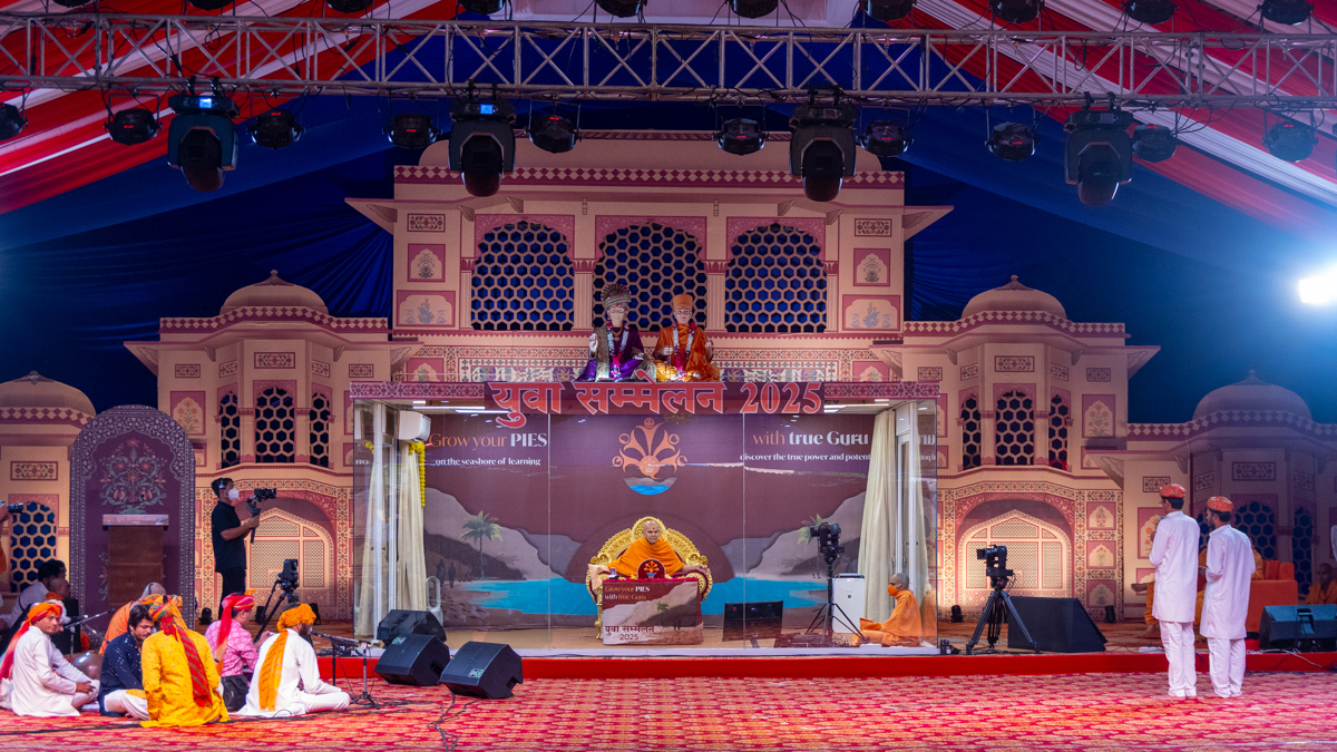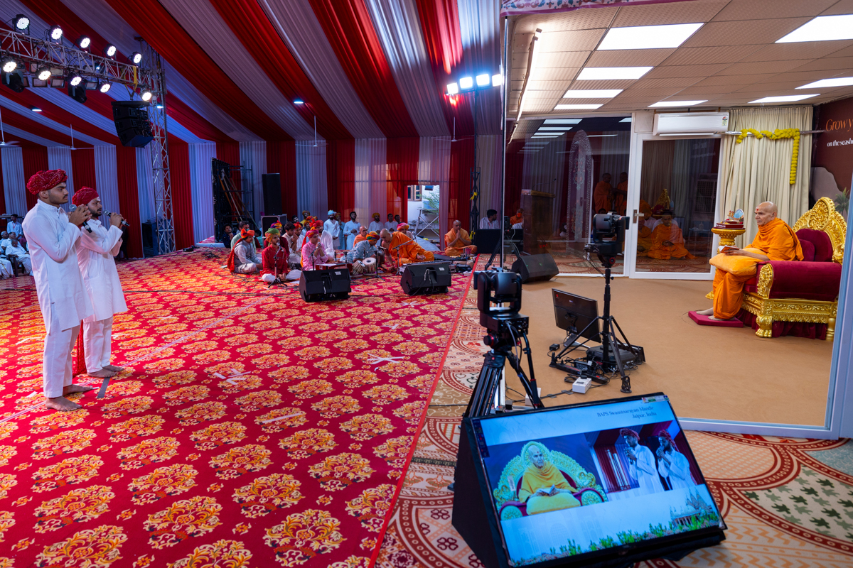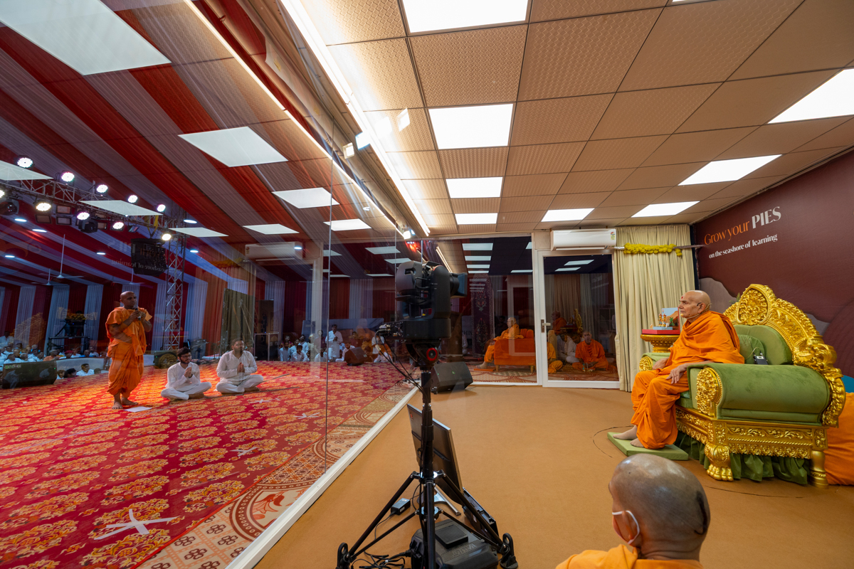 Swamishri watches the performance