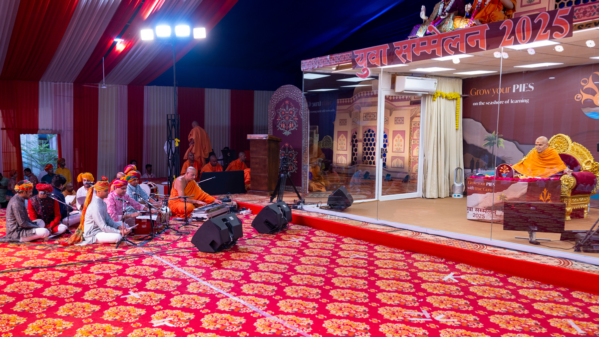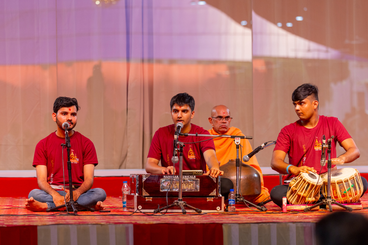 Youths sing kirtans in Swamishri's daily puja