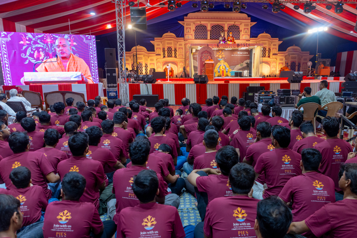 Yuvaks and devotees during the assembly