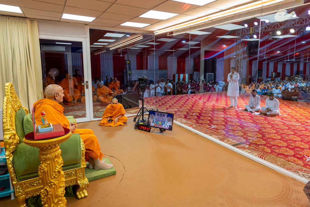Swamishri blesses the morning assembly