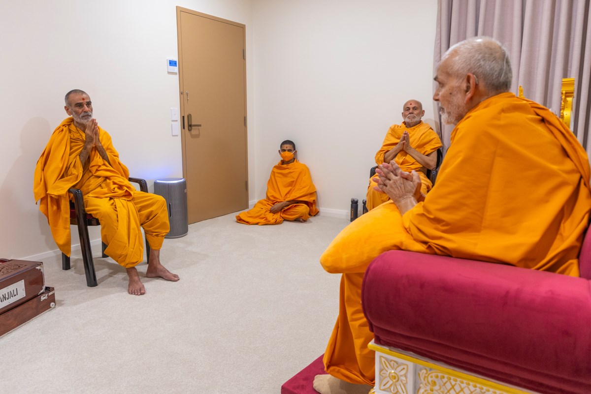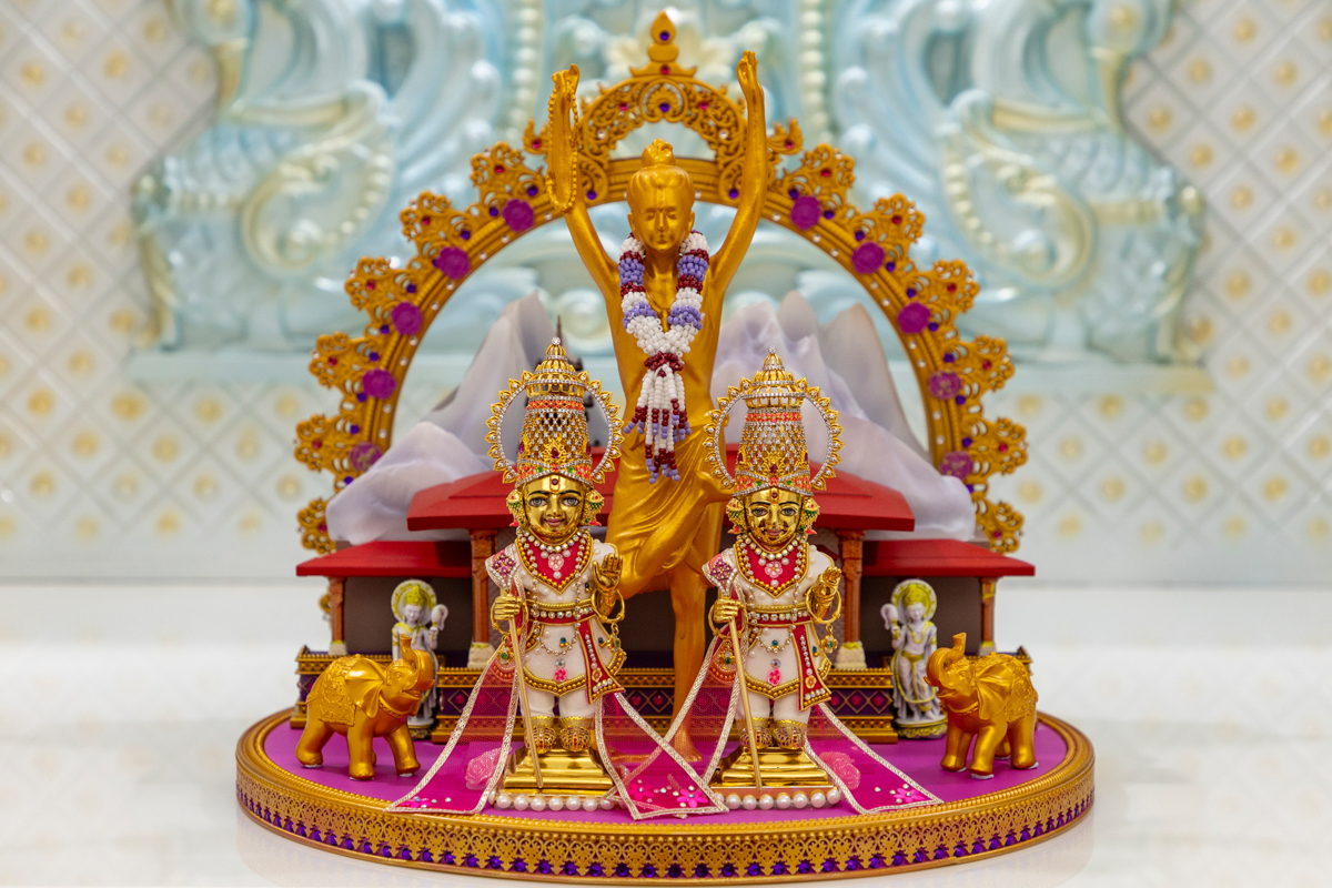 Swamis and devotees doing darshan of Tapomurti Shri Nilkanth Varni
