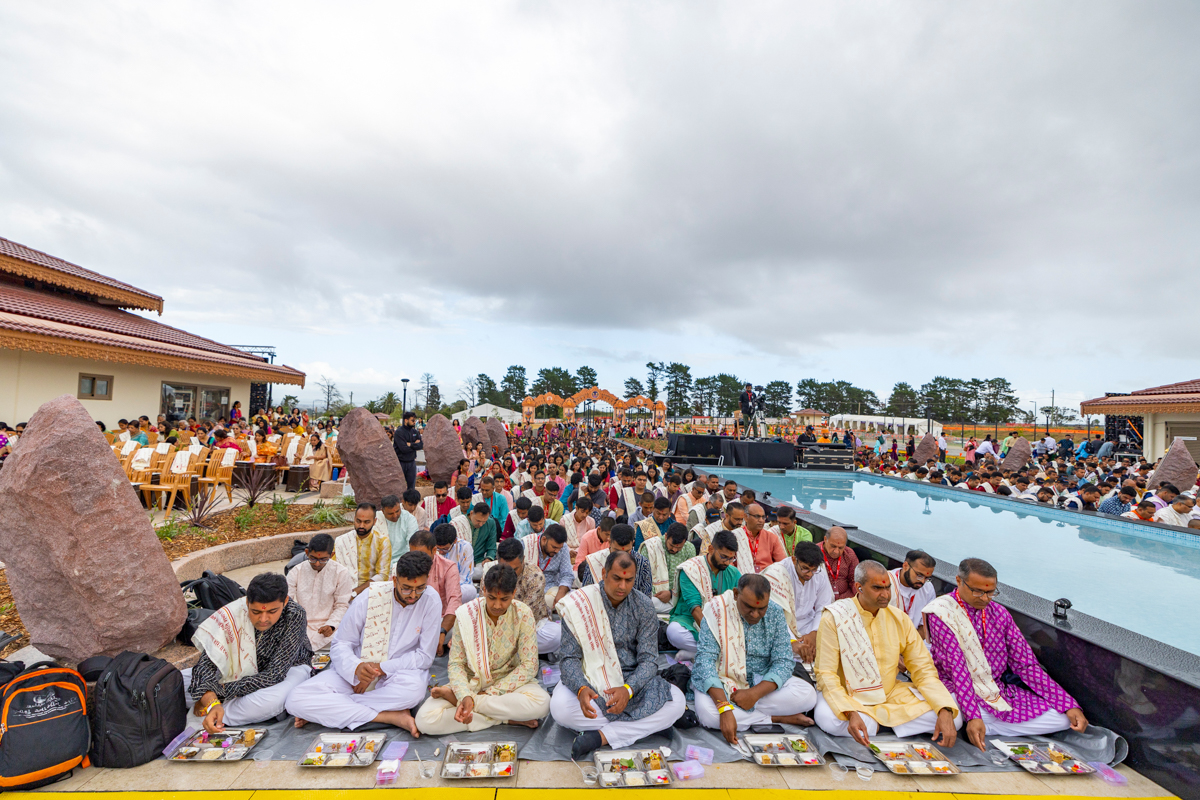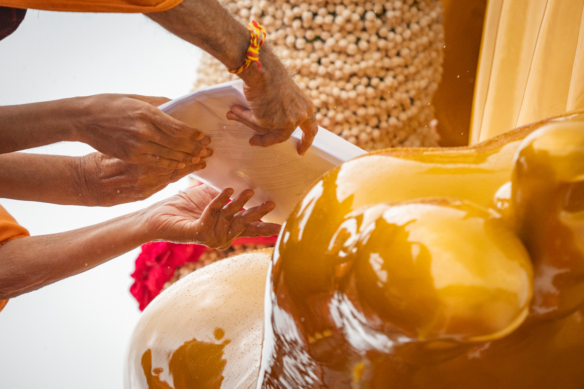 Anandswarup Swami and Shrijiswarup Swami participate in the mahapuja rituals