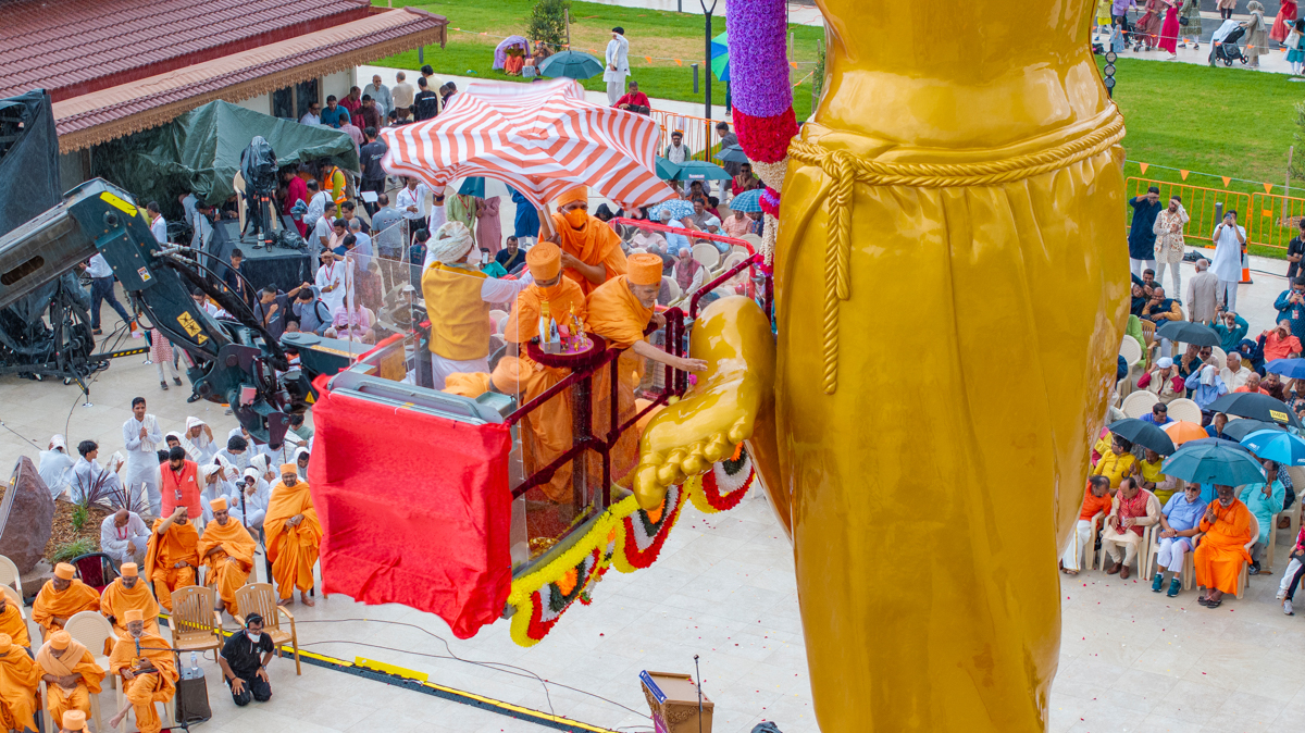 Swamishri arrives for the Tapomurti Shri Nilkanth Varni Murti-Pratishtha