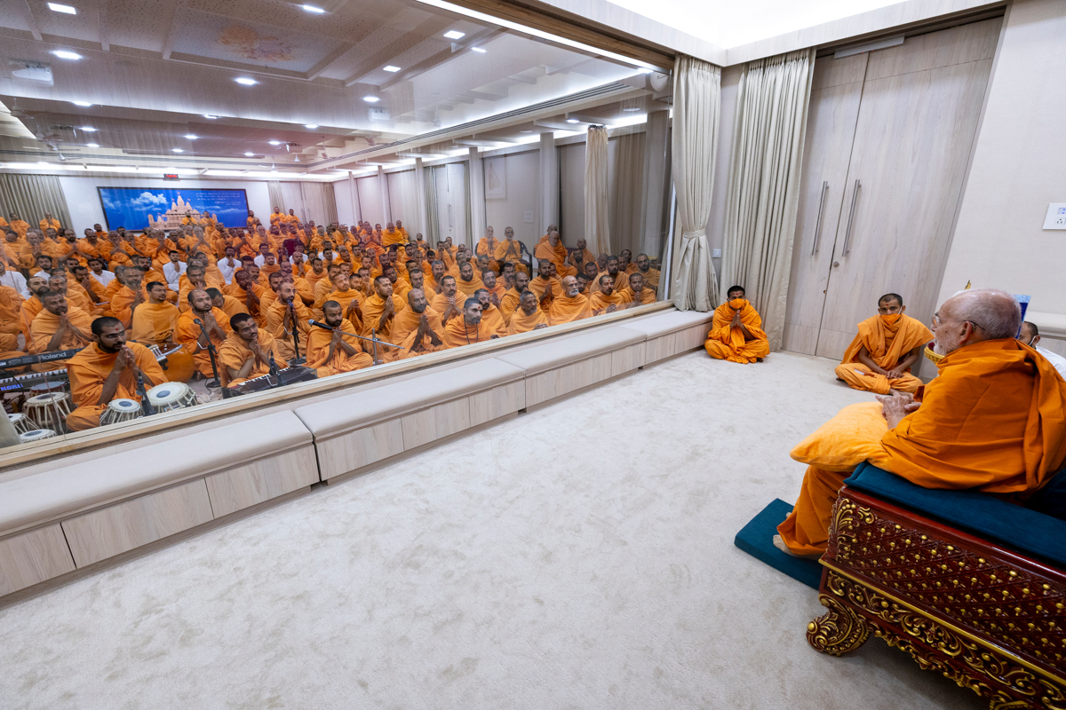 Gurudarshan Swami sings a kirtan in Swamishri's daily puja