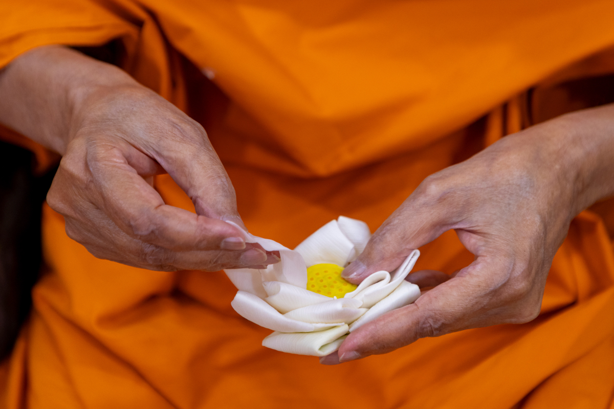 Swamishri offers a flower to Shri Harikrishna Maharaj and Shri Gunatitanand Swami Maharaj