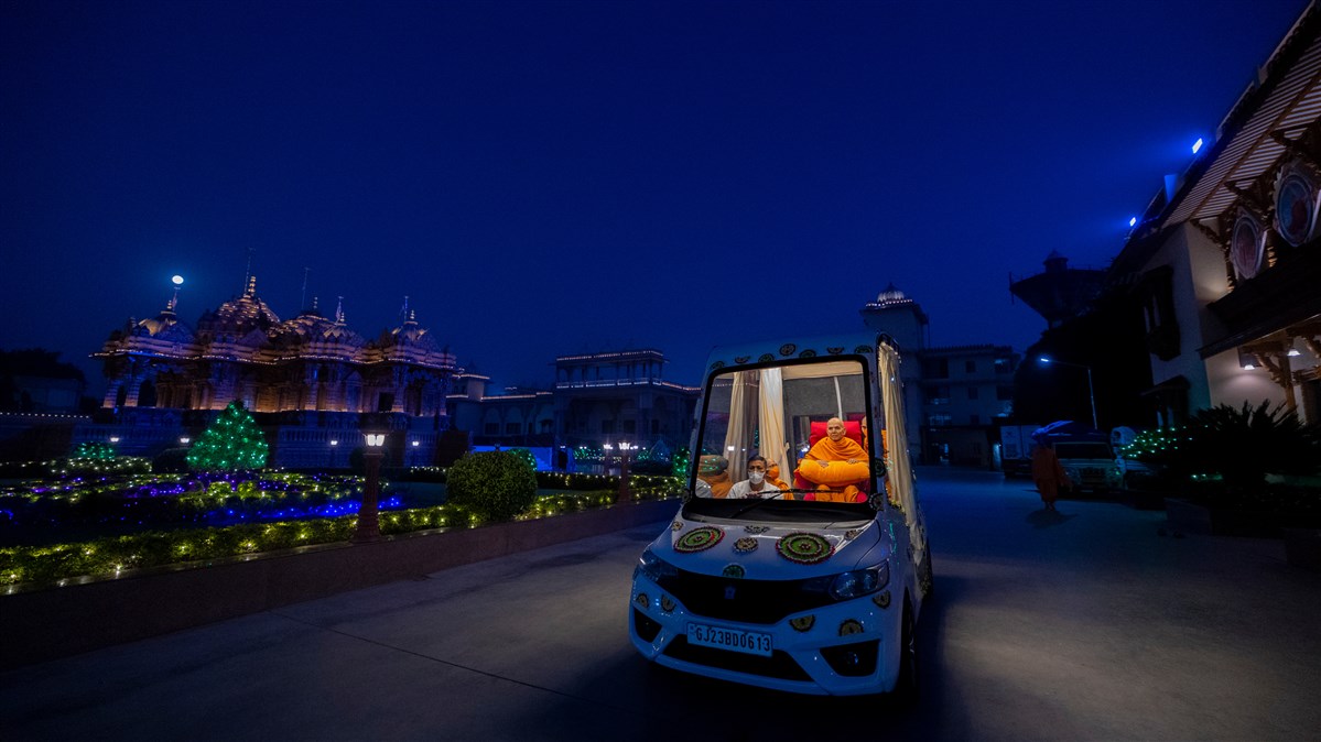 Param Pujya Mahant Swami on his way to perform his daily puja