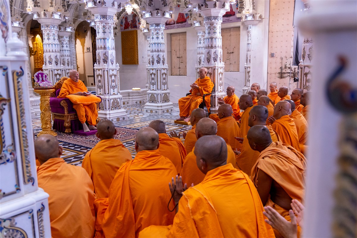 Swamis doing darshan of Swamishri