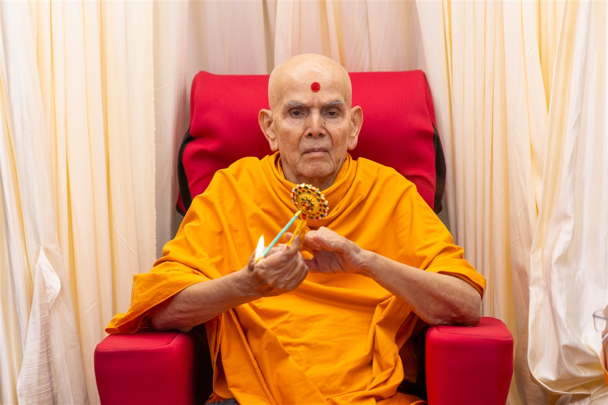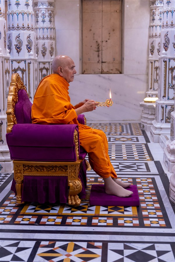 Swamishri performs the morning arti