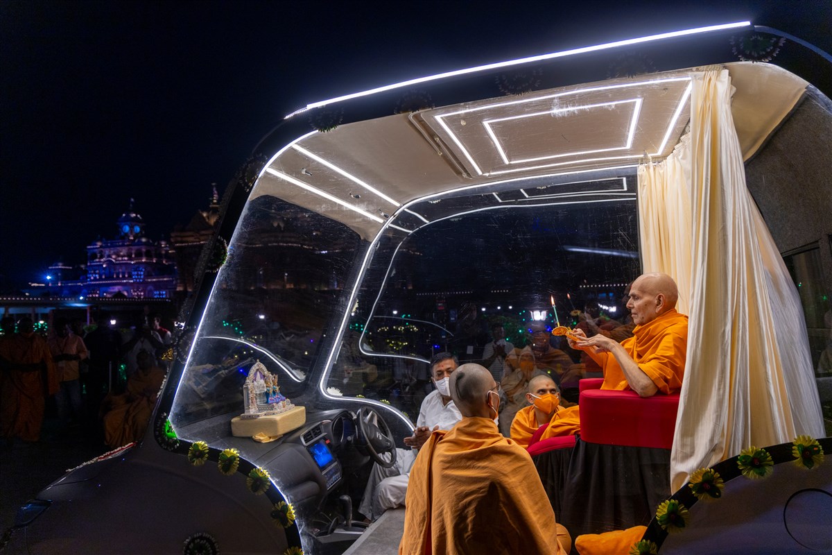 Swamishri performs the evening arti