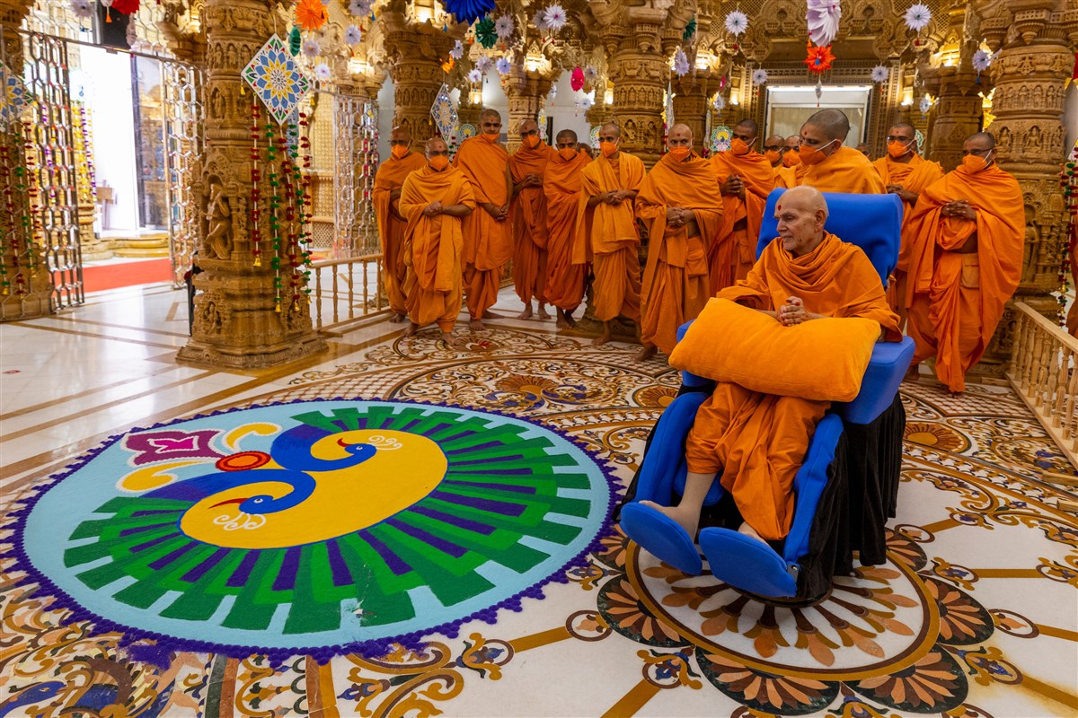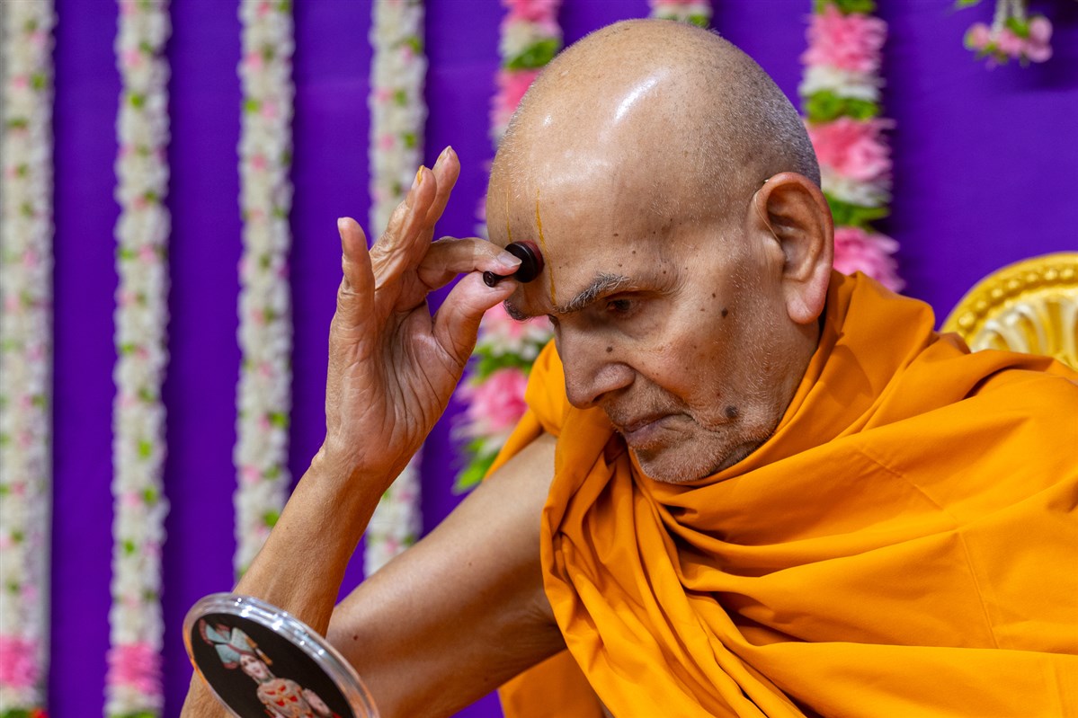 Param Pujya Mahant Swami Maharaj applies a tilak on his forehead