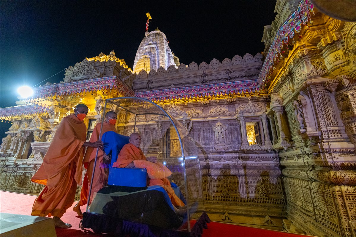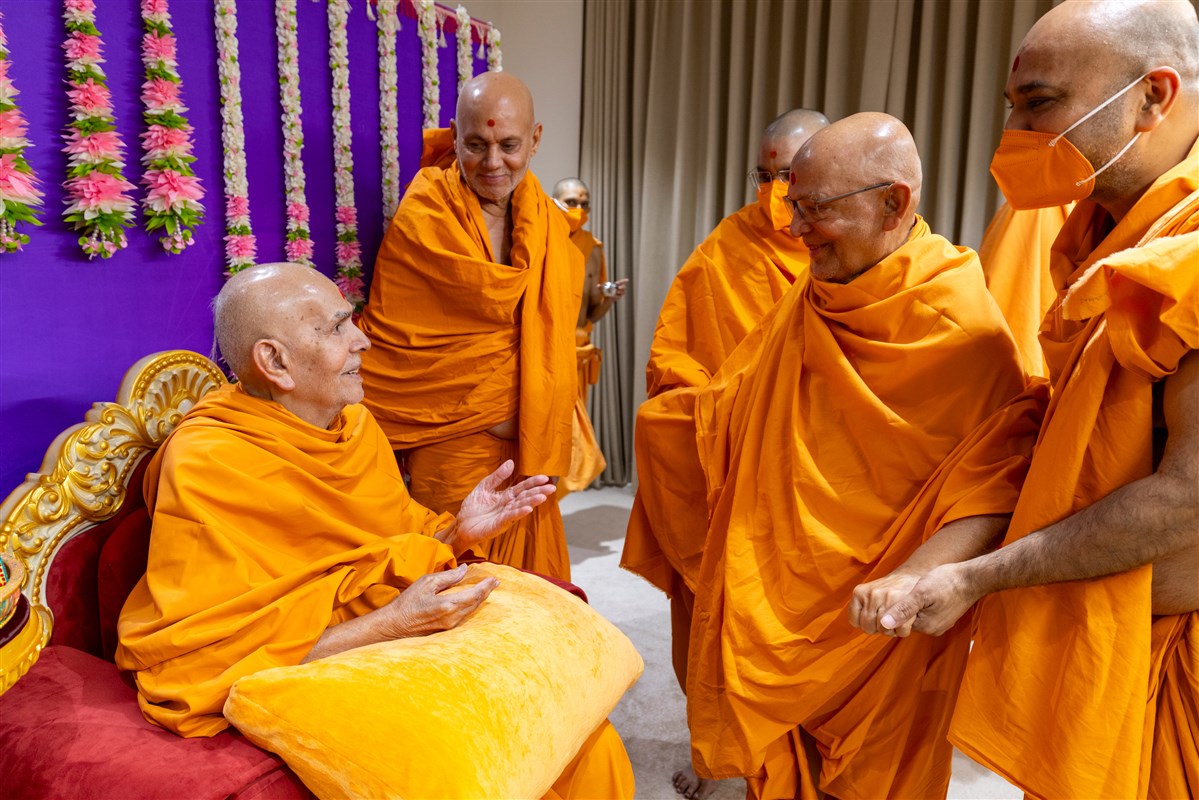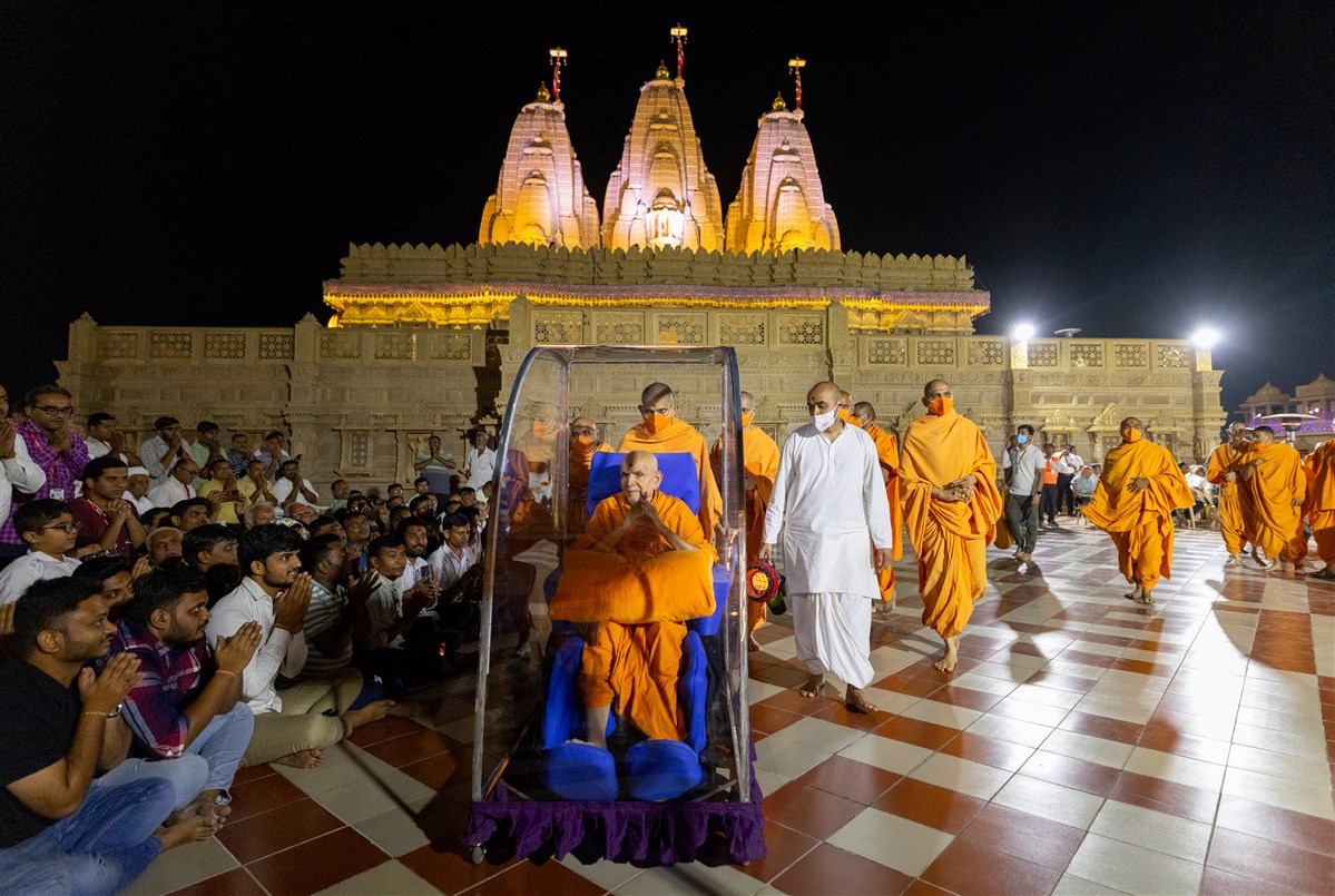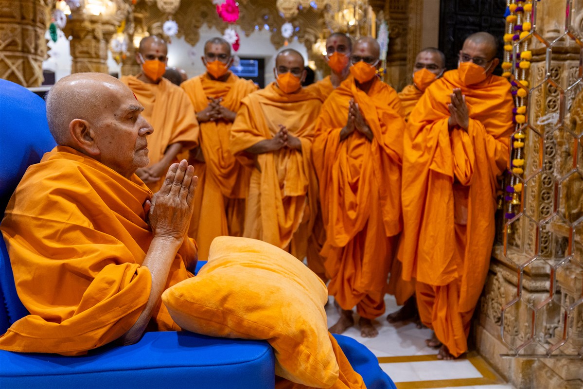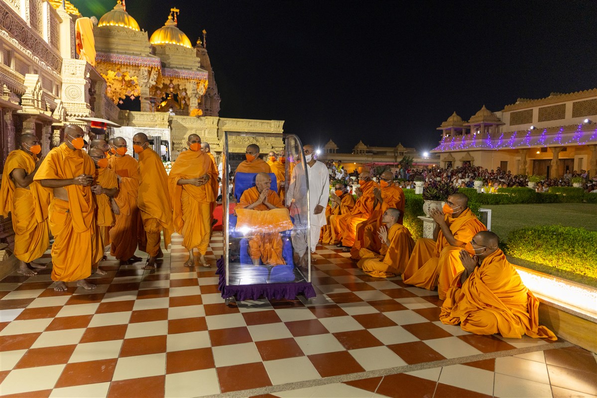 Swamishri engrossed in darshan of Brahmaswarup Pramukh Swami Maharaj