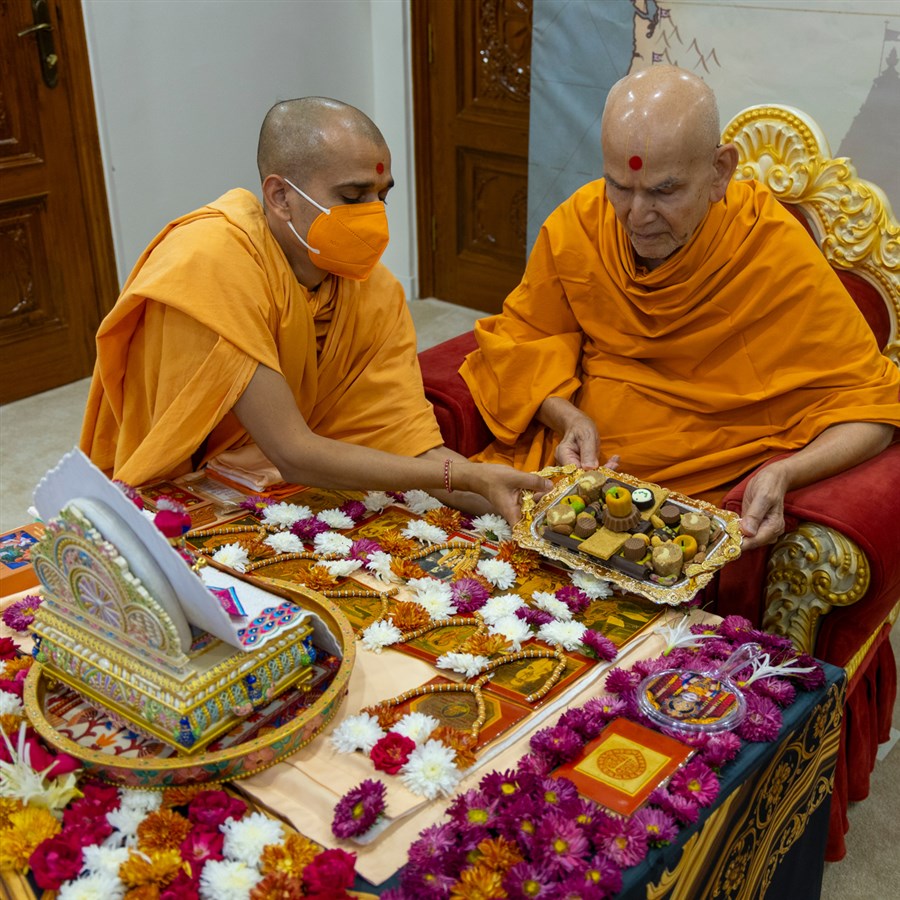 Thal is offered to Shri Harikrishna Maharaj and Shri Gunatitanand Swami Maharaj