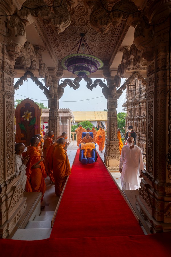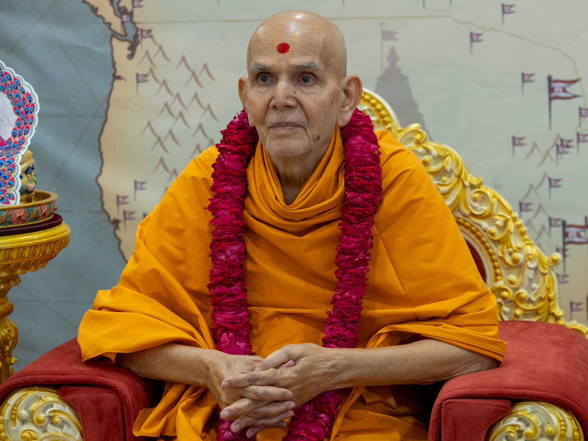Swamishri engrossed in darshan of Shri Ghanshyam Maharaj