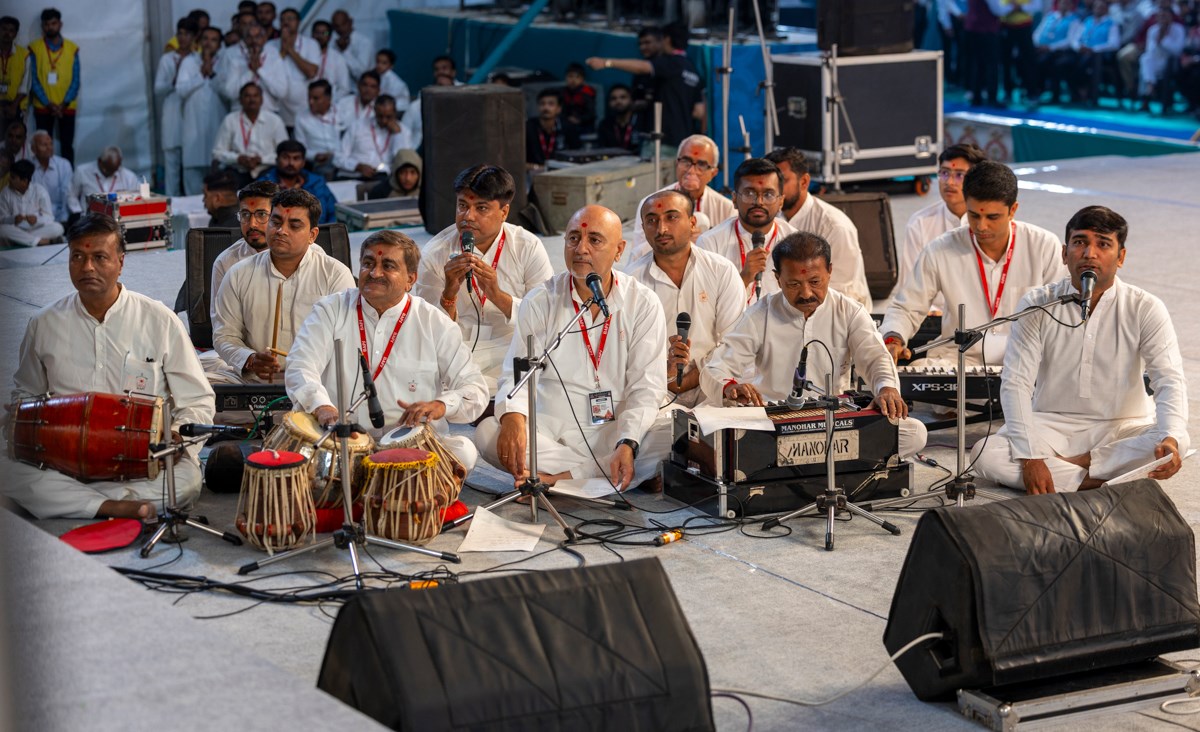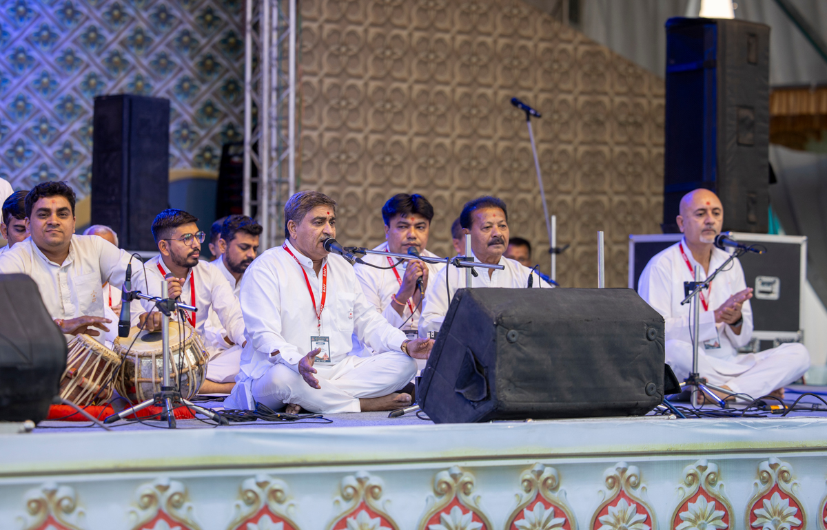 Youths sing kirtans in Swamishri's daily puja