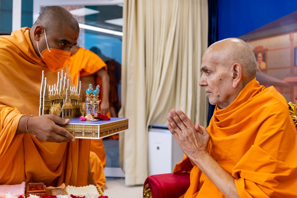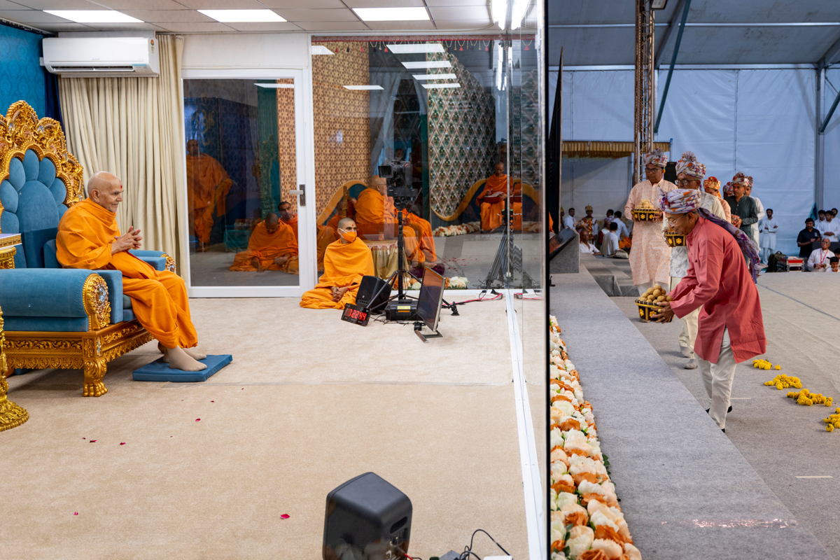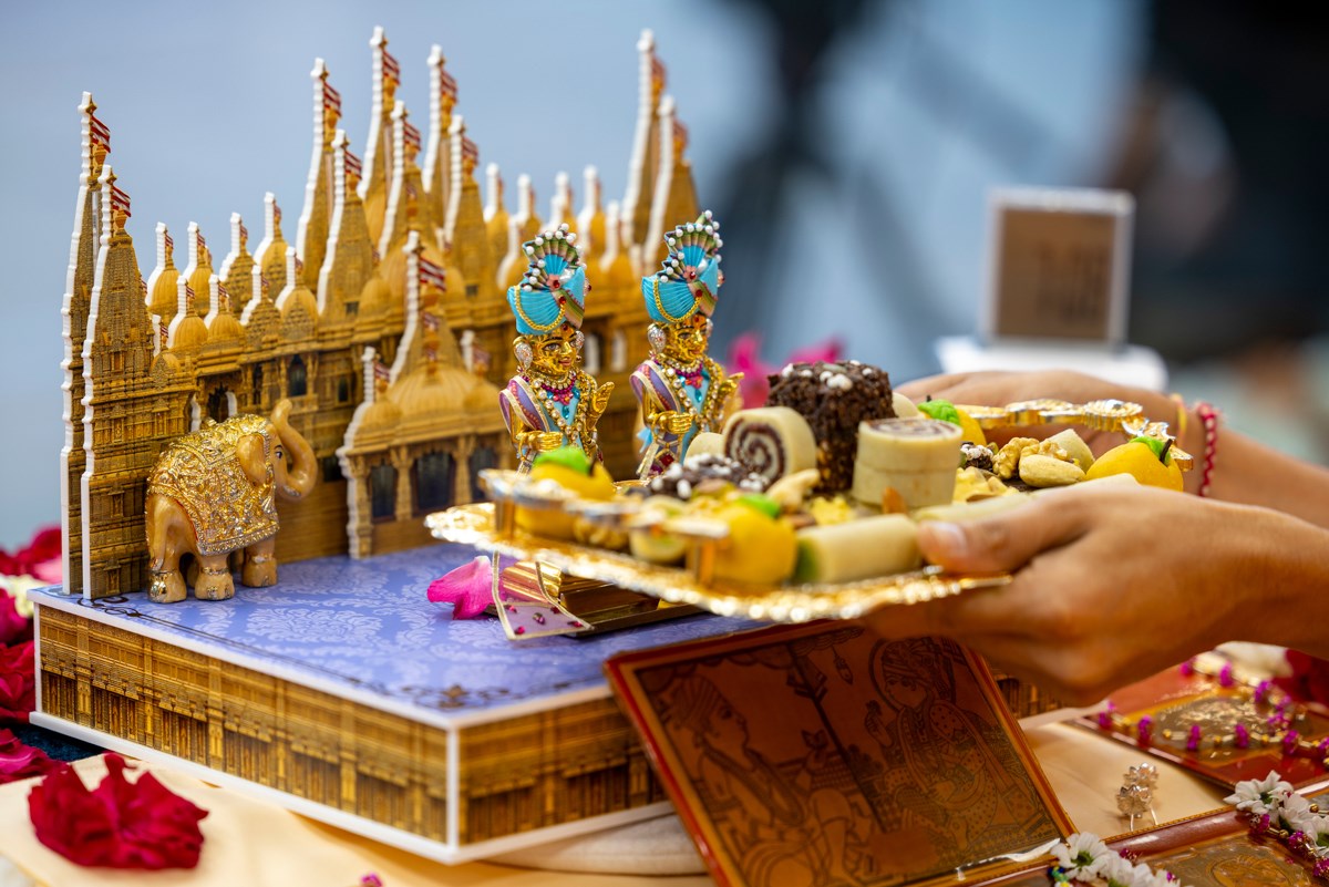 Devotees present sweets to welcome Swamishri