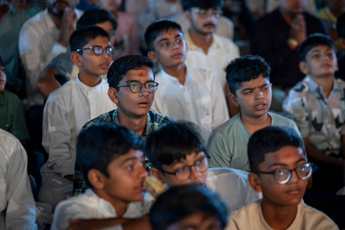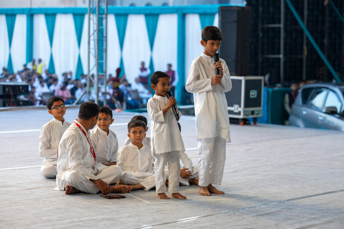 Balaks who have memorized the entire Satsang Diksha doing darshan of Swamishri