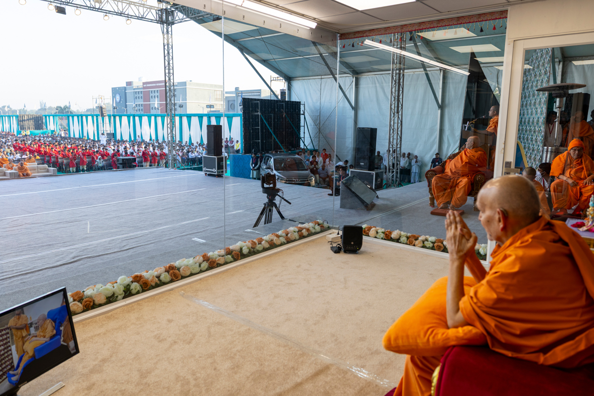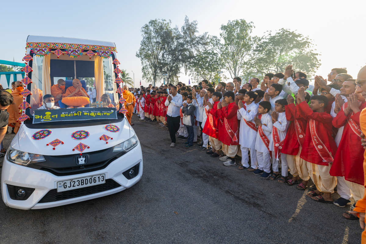 Swamishri greets all with folded hands