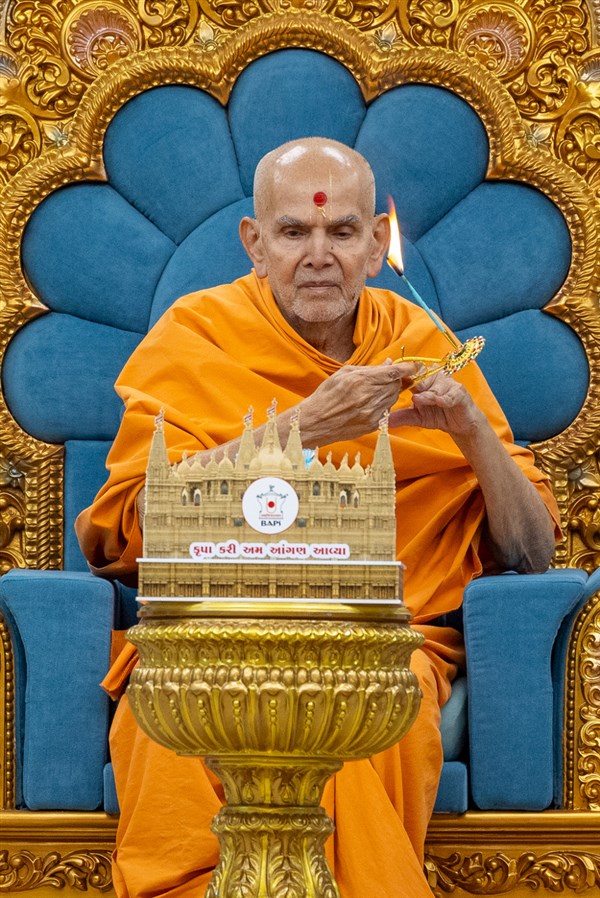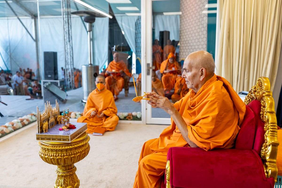 Swamishri performs the morning arti