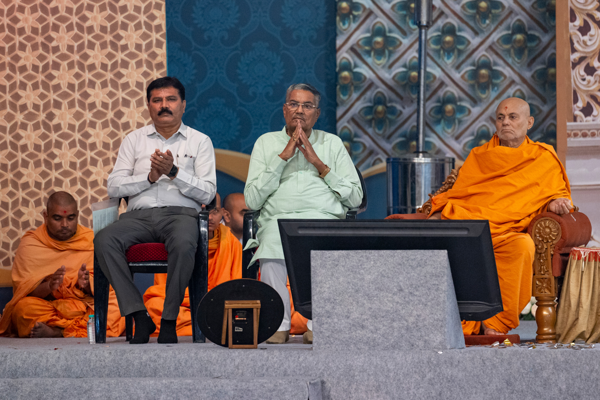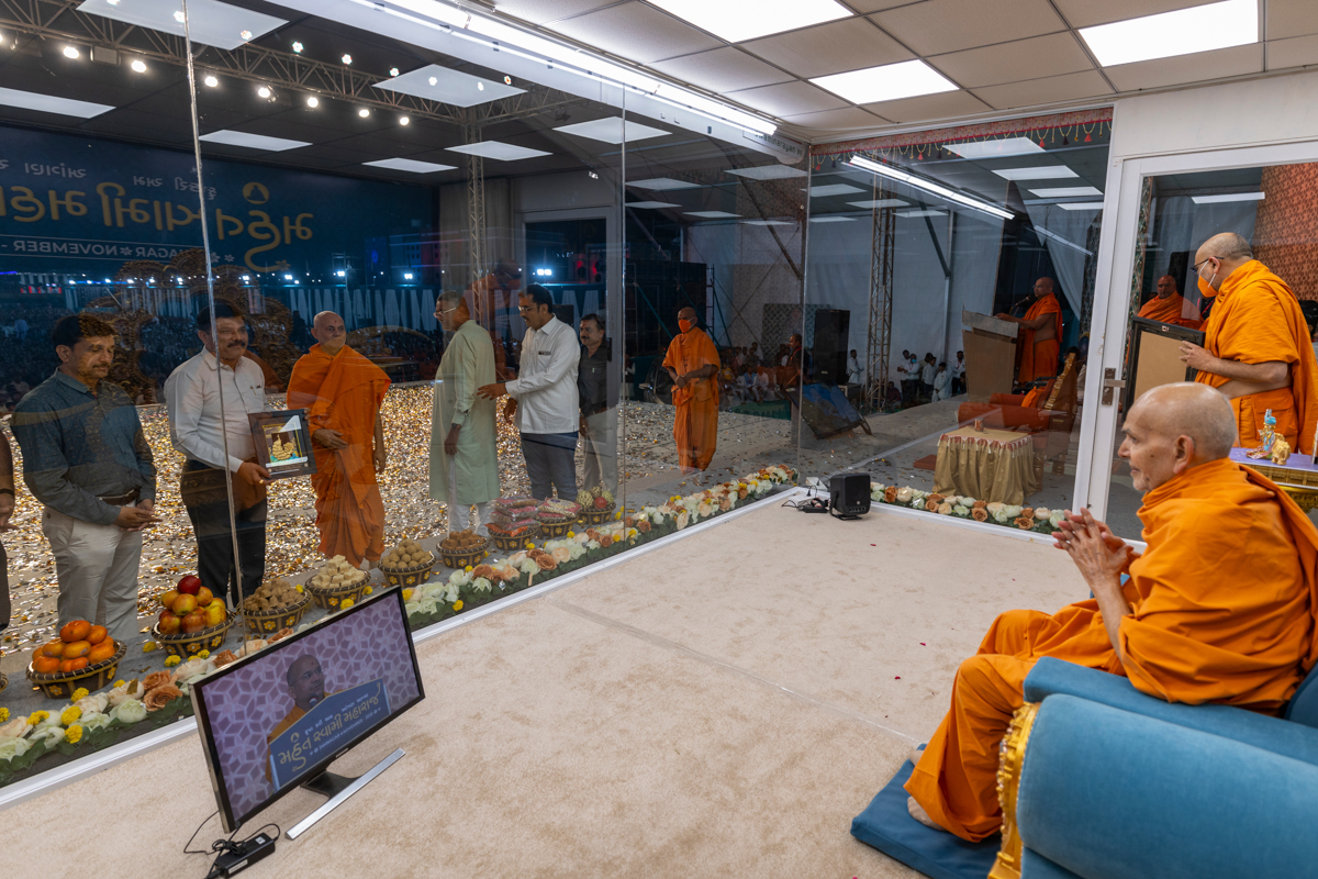 Dignitaries doing darshan of Swamishri