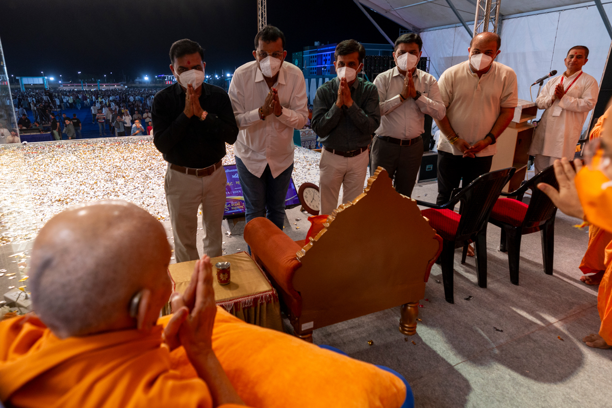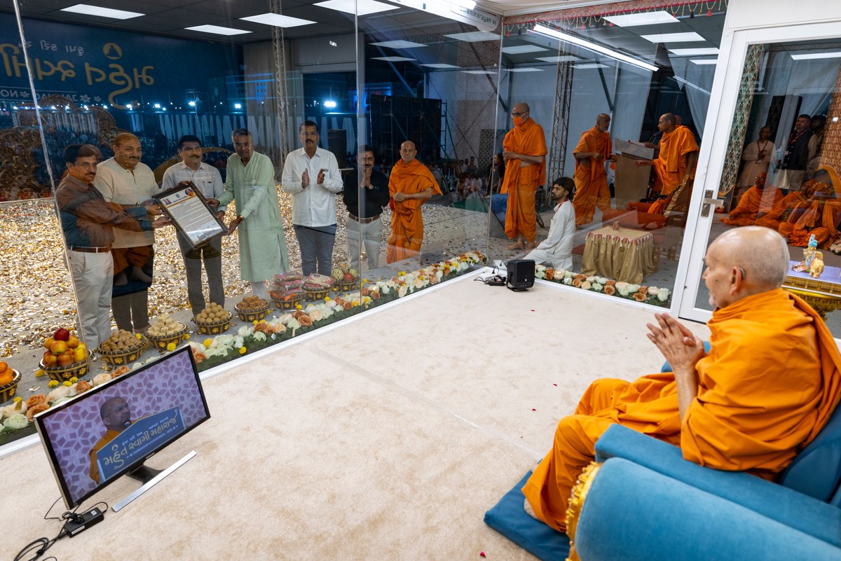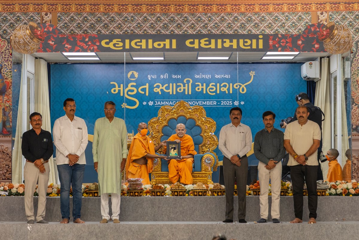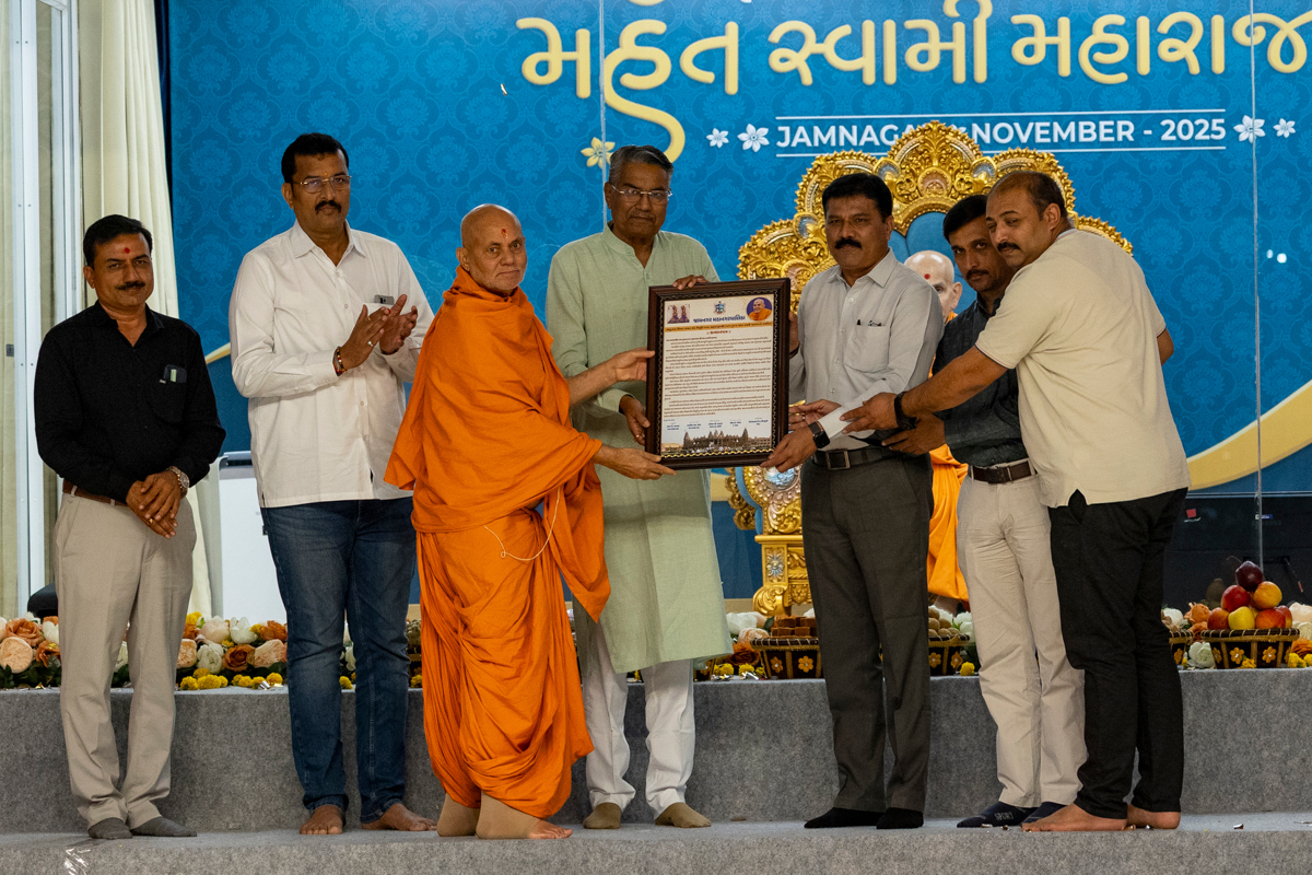 Members of Jamnagar Mahanagarpalika honor Swamishri