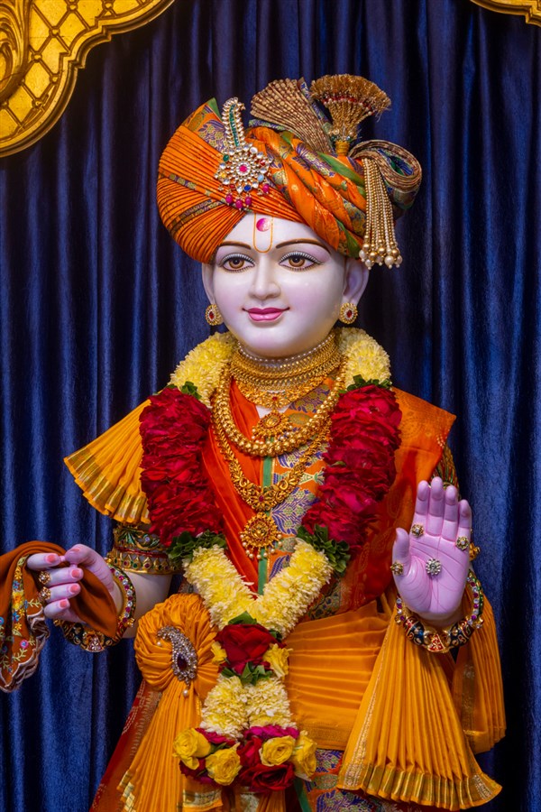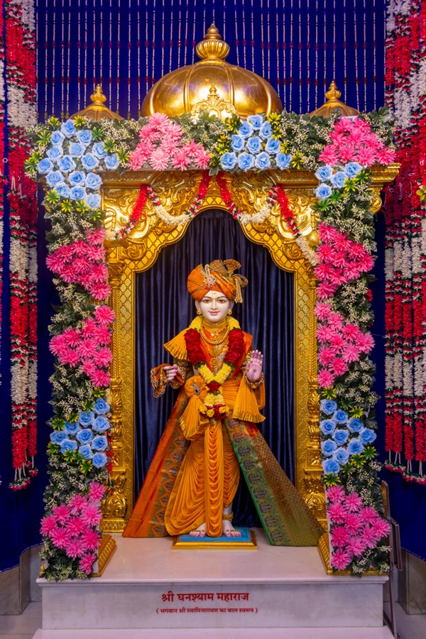 Swamishri engrossed in darshan of Shri Ghanshyam Maharaj