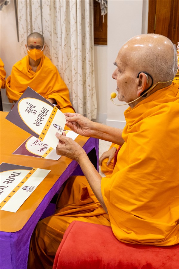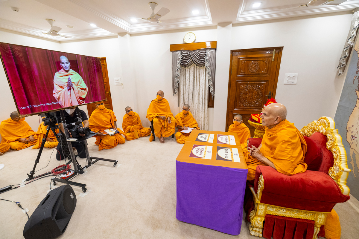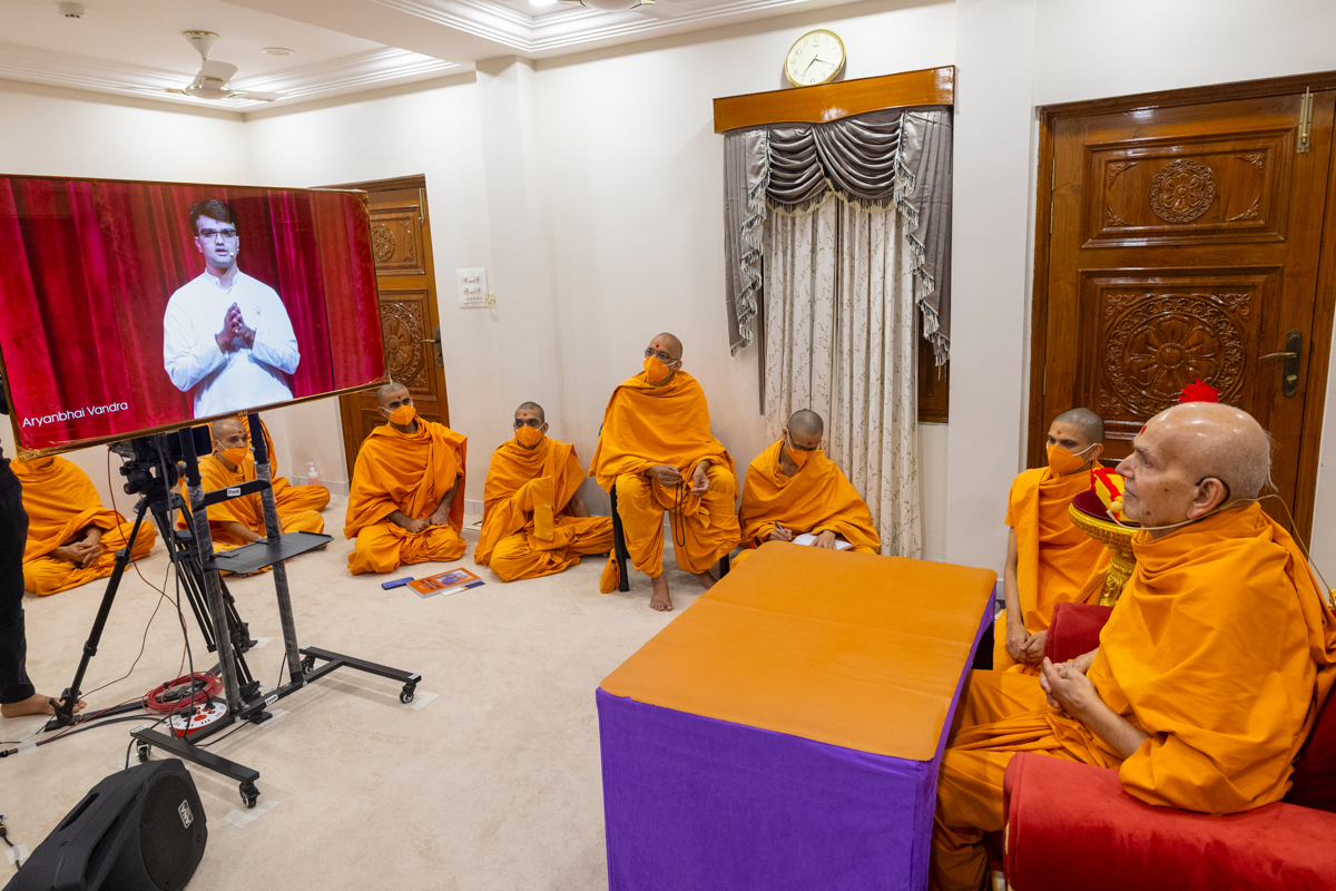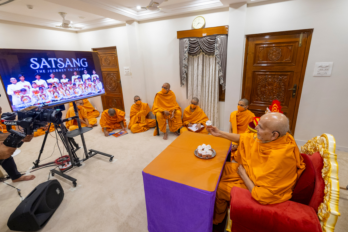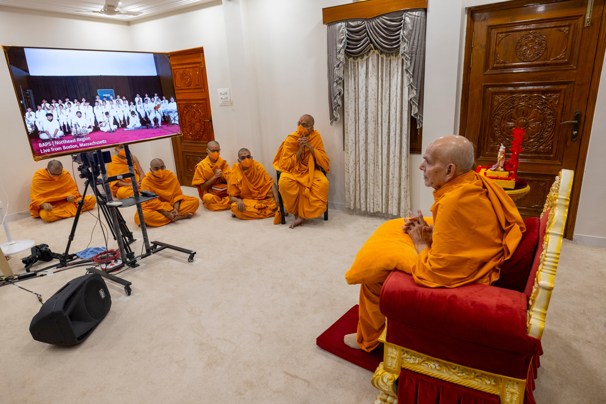 Children from Boston, USA, sing kirtans in Swamishri's daily puja via video conference