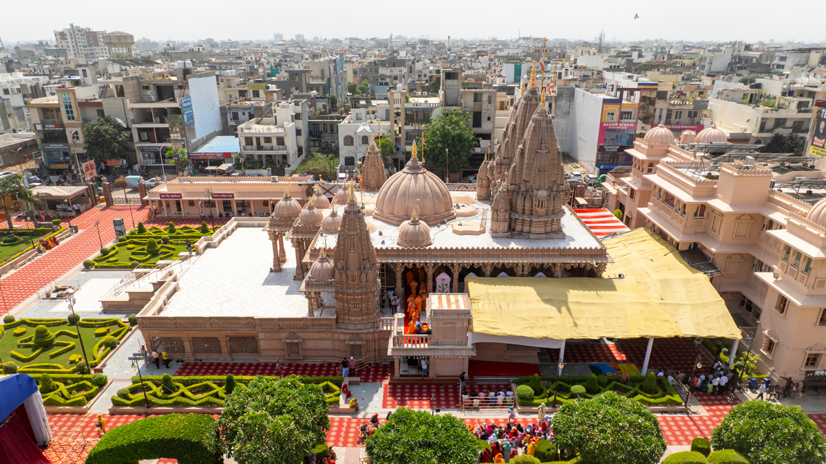 Aerial view of BAPS Shri Swaminarayan Mandir, Jaipur