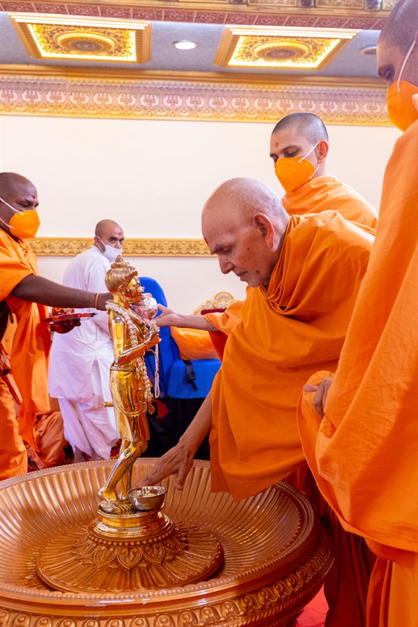 Swamishri performs abhishek of Shri Nilkanth Varni