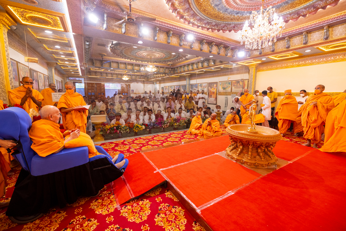 Swamishri reads the Shikshapatri and Satsang Diksha