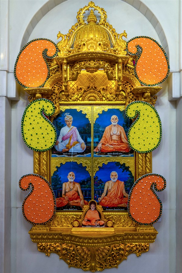 Swamishri engrossed in darshan of Shri Guru Parampara