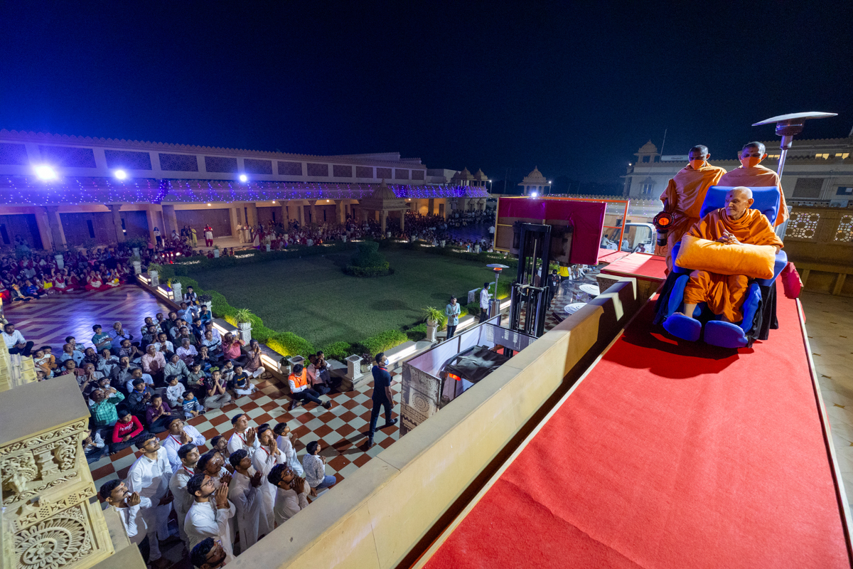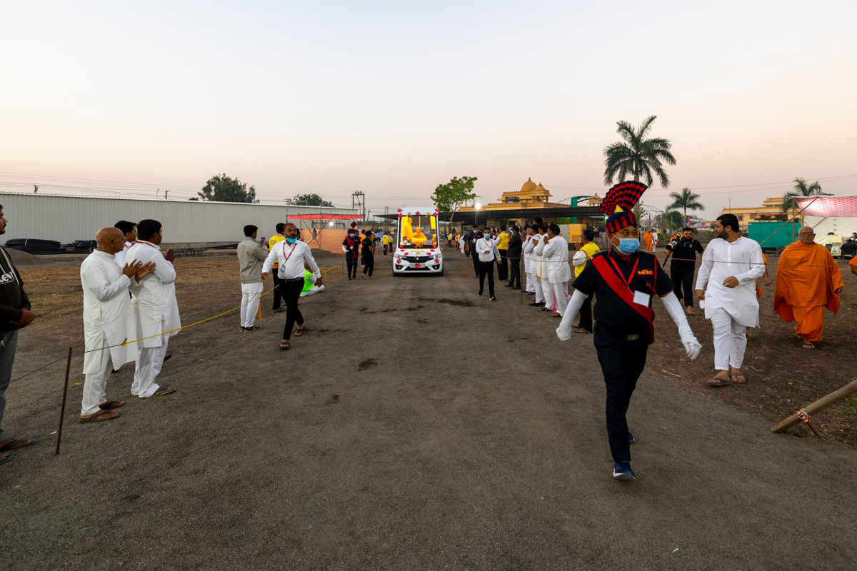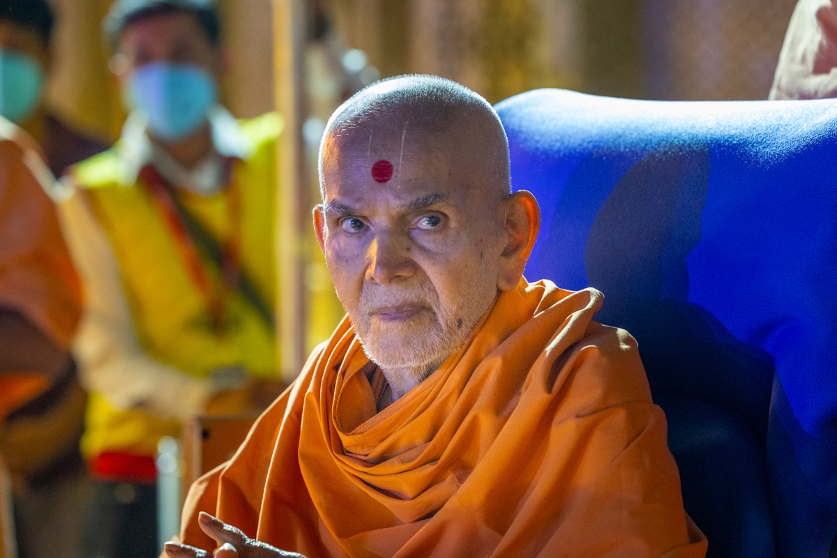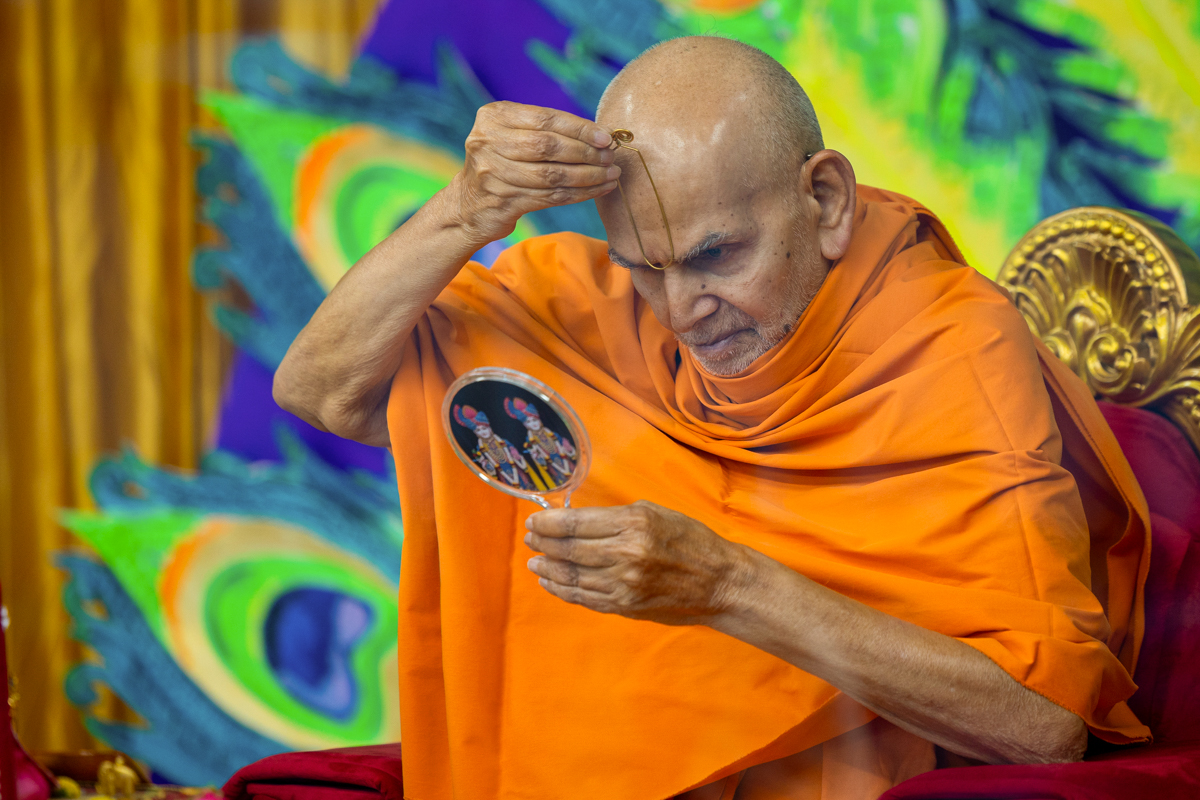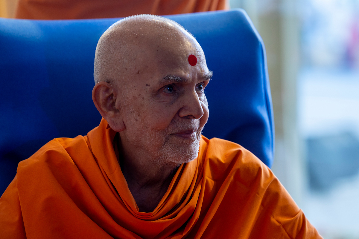 Param Pujya Mahant Swami Maharaj on his way to perform his daily puja