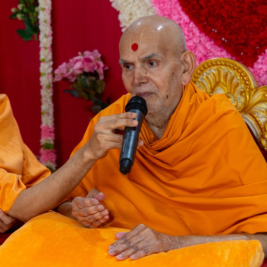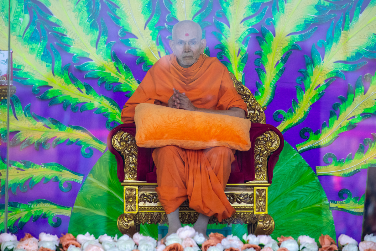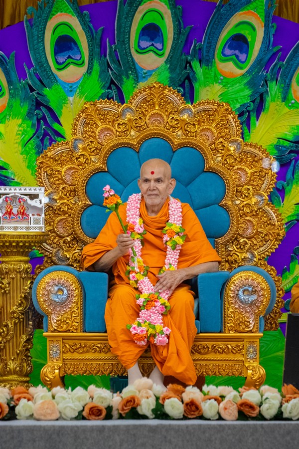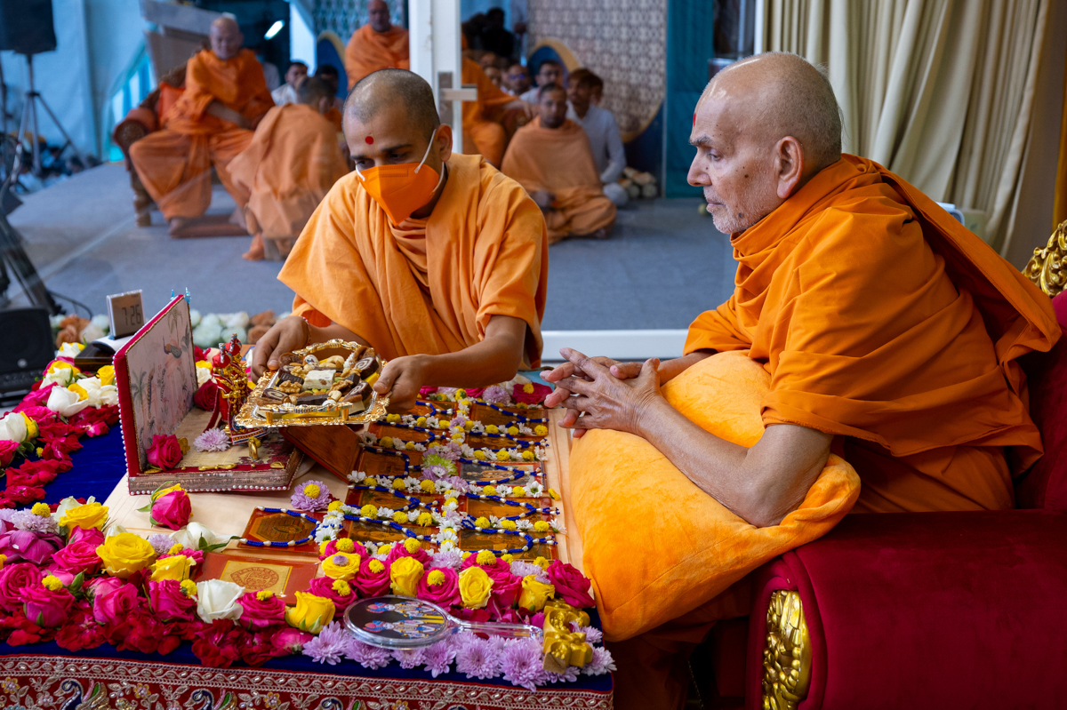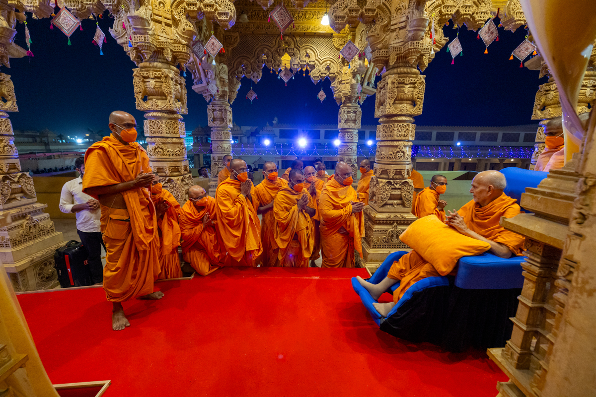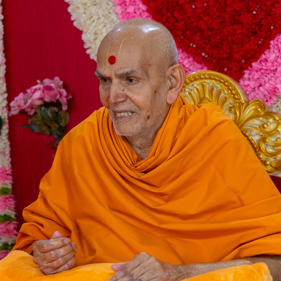 Param Pujya Mahant Swami Maharaj on his way to perform his daily puja