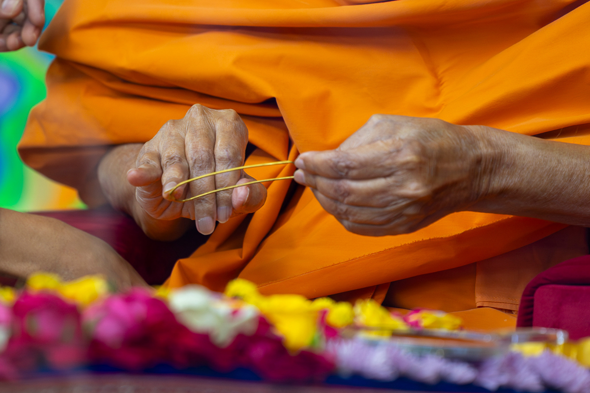 Swamishri sanctifies water with the holy relics of Bhagwan Swaminarayan and the Guru Parampara