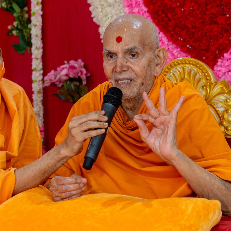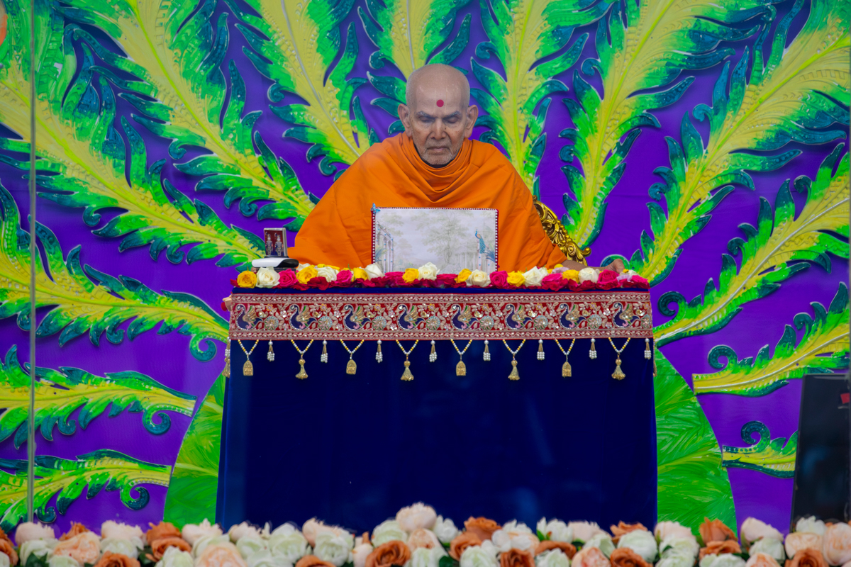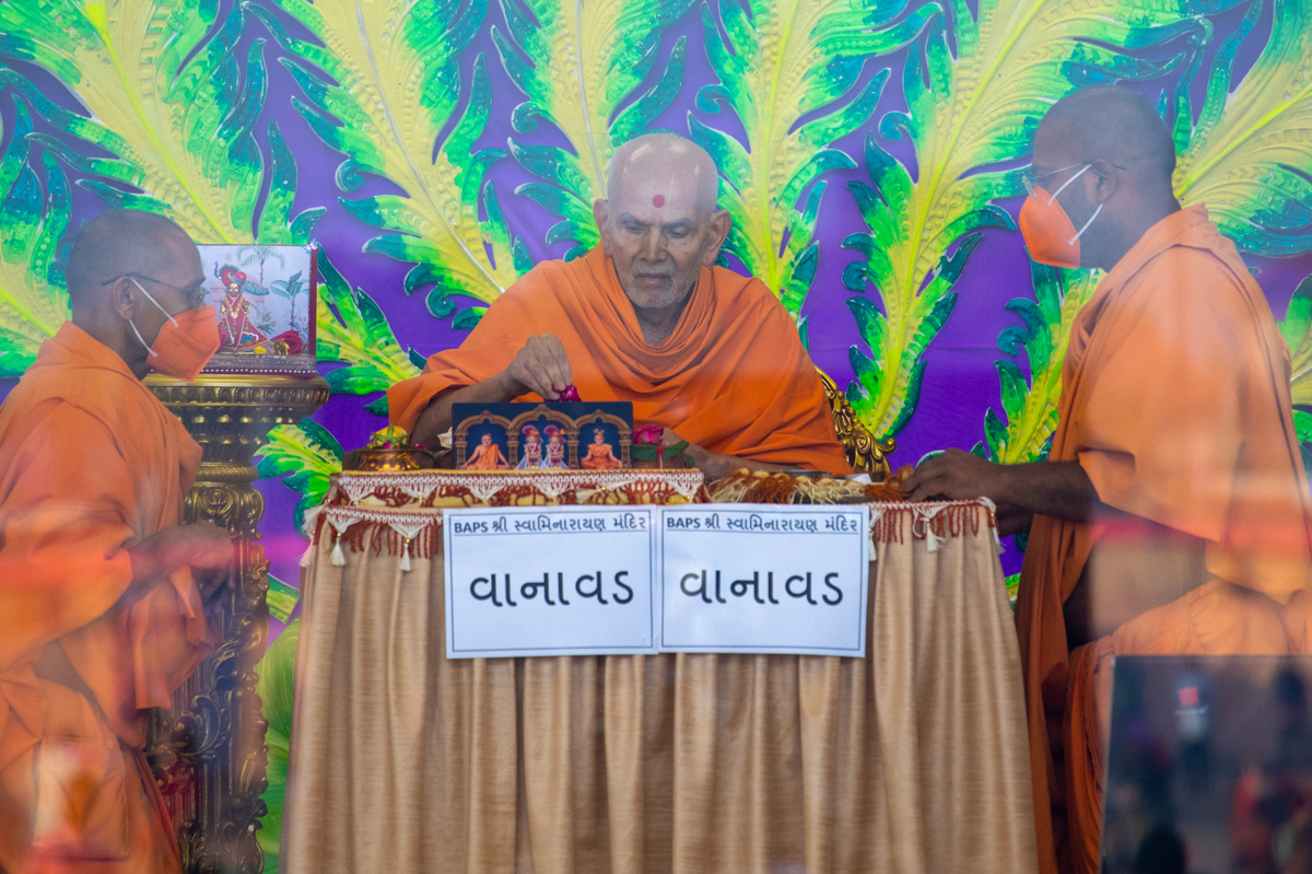 Swamishri sanctifies bricks to start construction at BAPS Shri Swaminarayan Mandir, Vanavad, India
